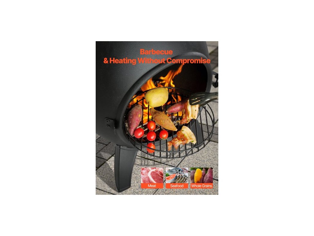 Chiminea, 18palcové venkovní ohniště na dřevo, kulovitý krb pro grilování a ohřev, venkovní dřevěné ohniště s grilovací mřížkou, komínovým pláštěm a nerezovým víkem Chiminea, pro terasu, zahradu, dvorekMultifunkční Chiminea