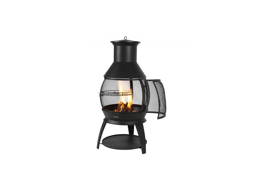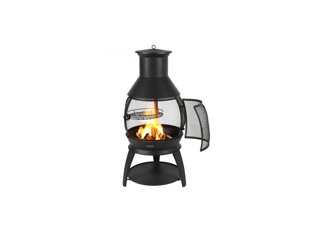Chiminea, venkovní ohniště na dřevo o průměru 22 palců, kulovitý železný krb pro grilování a ohřev, dřevěné ohniště s mřížkou, komínovým pláštěm a nerezovým víkem Chiminea, na terasu, zahradu, dvůr