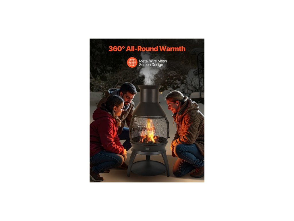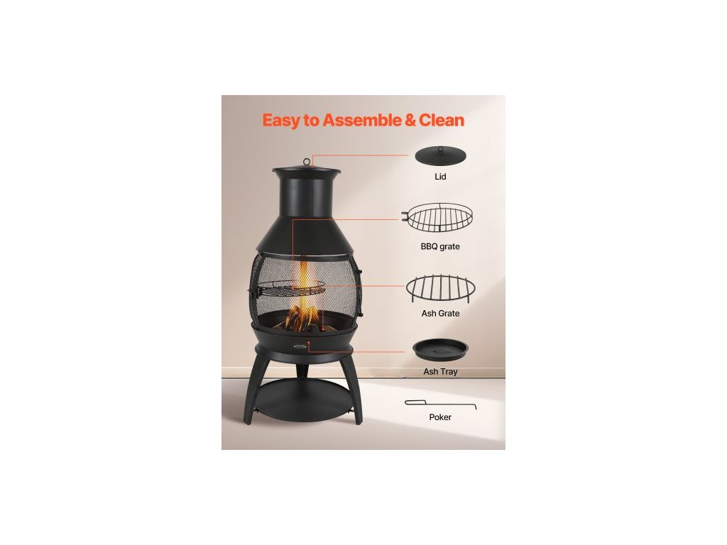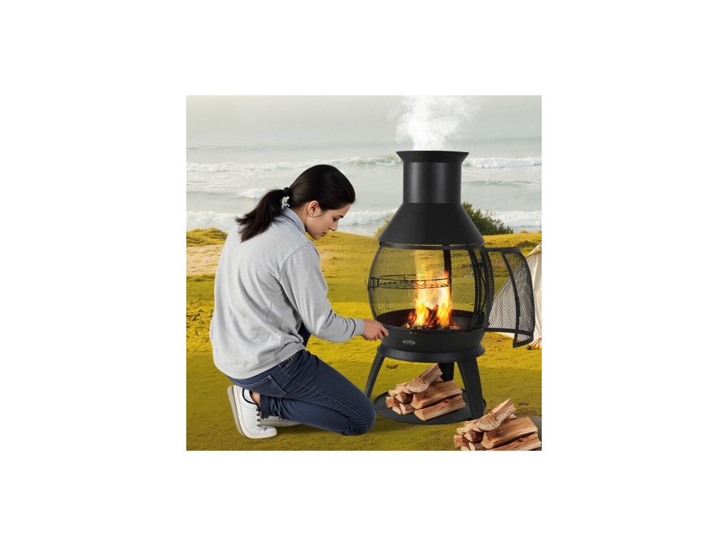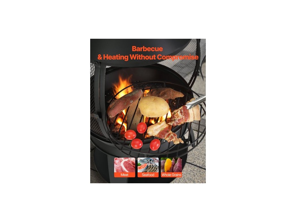 Chiminea, venkovní ohniště na dřevo o průměru 22 palců, kulaté železné ohniště pro grilování a ohřev, dřevěné ohniště s grilovací mřížkou, komínovým pláštěm a nerezovým víkem Chiminea, pro terasu, zahradu, dvorekMultifunkční ohniště