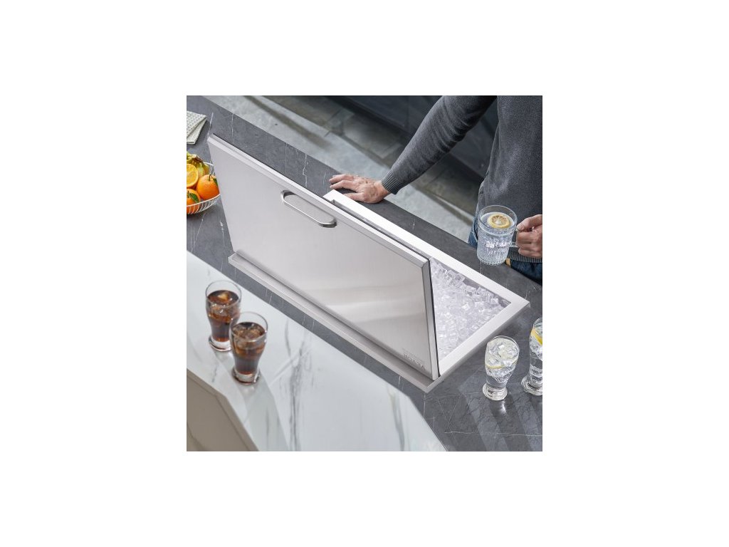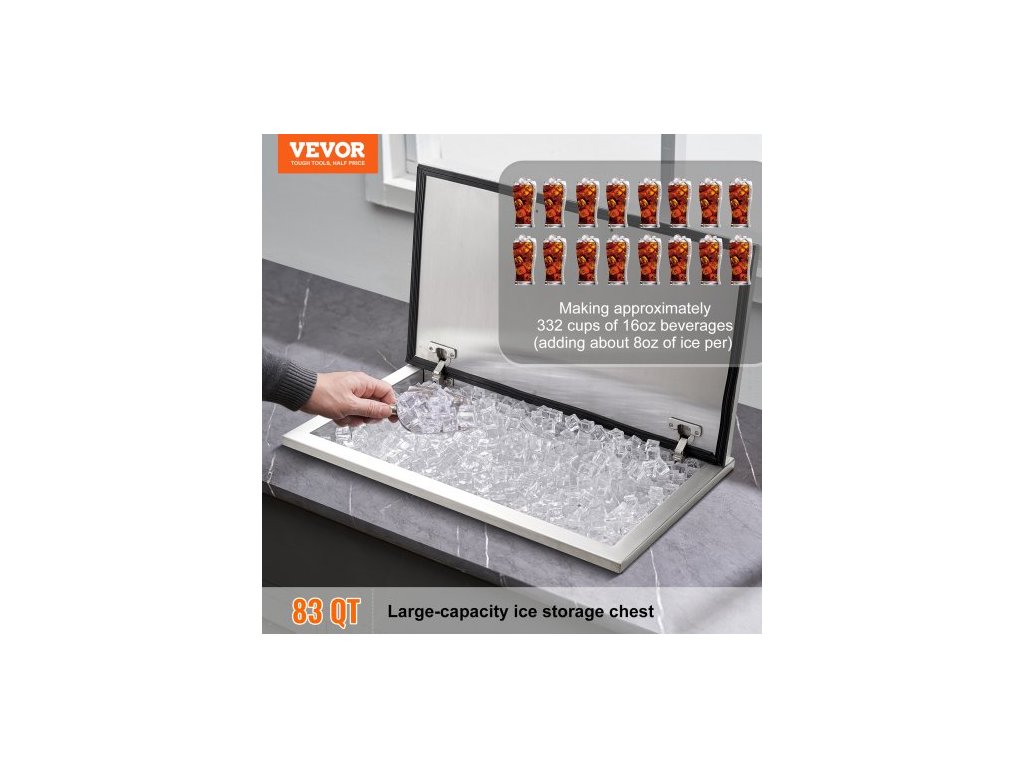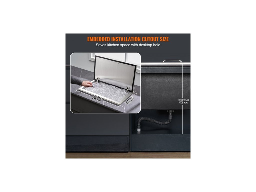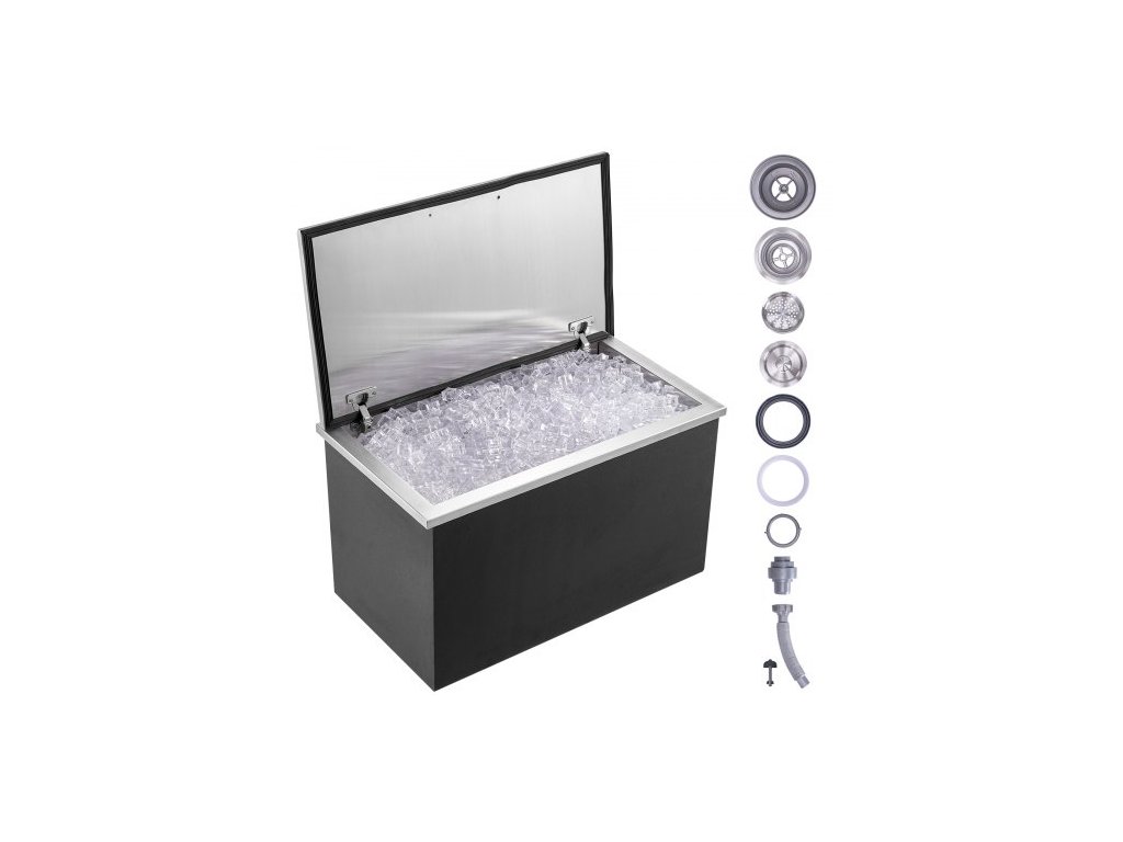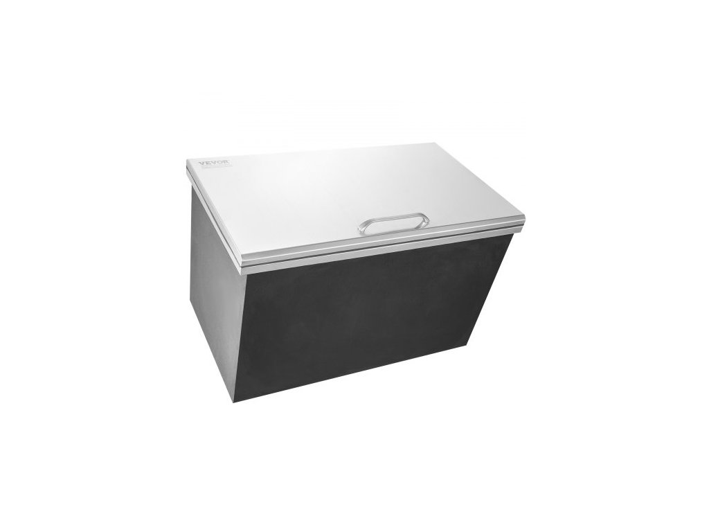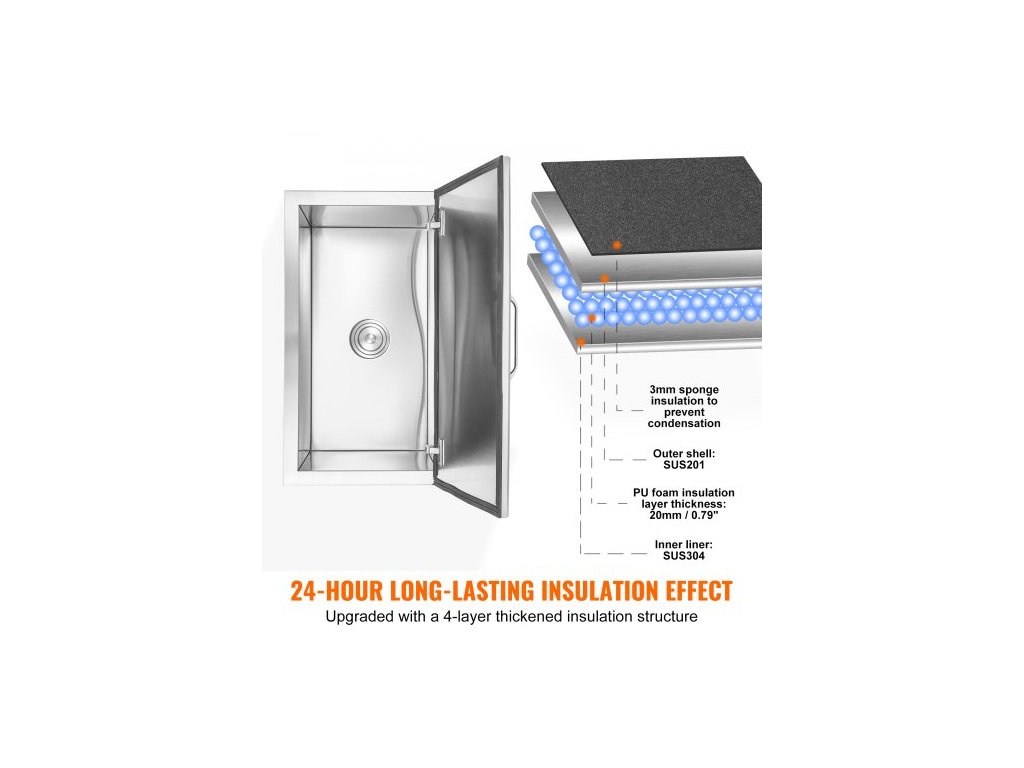 Chladič ledu, 24"D x 20"Š x 15"V z nerezové oceli, komerční nádoba na led s výklopným víkem, venkovní kuchyňský ledový bar o objemu 40 qt, součástí balení je odtoková trubka a odtoková zátka, na studené víno a pivoZabudovaná nádoba na led