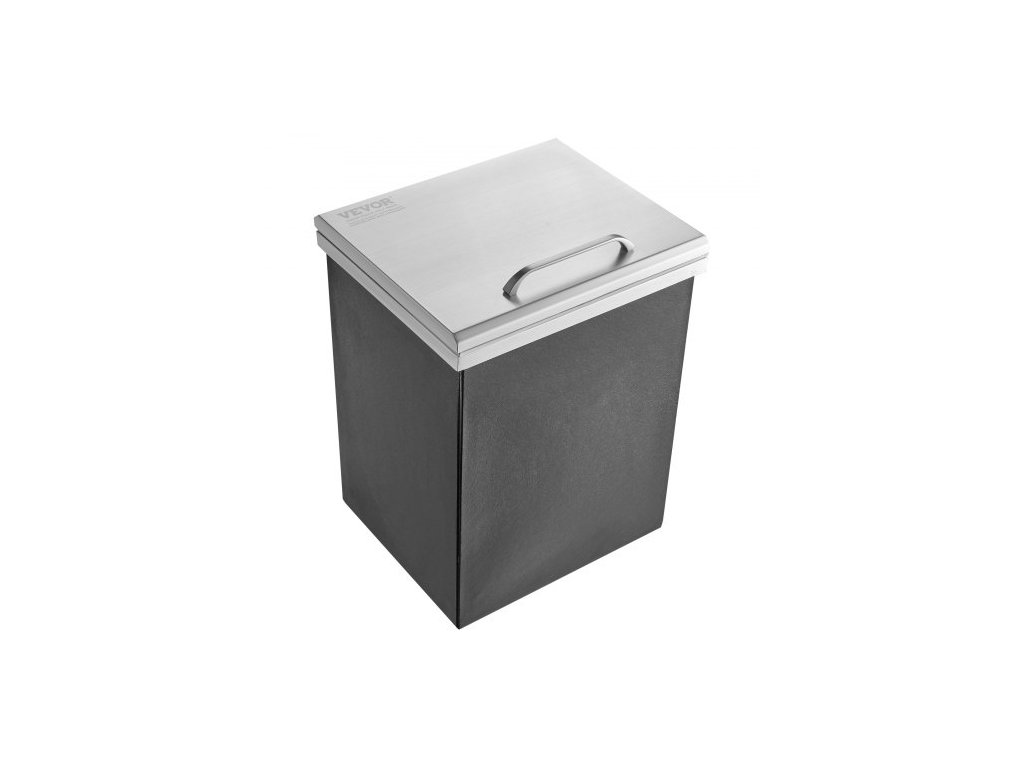 Chladič ledu , nerezová ocel, 35,5 cm D x 30,5 cm Š x 45,5 cm V, komerční nádoba na led s výklopným víkem, venkovní kuchyňský ledový bar o objemu 40 qt, součástí balení je odtoková trubka a odtoková zátka, na studené víno a pivoZabudovaná nádoba na led