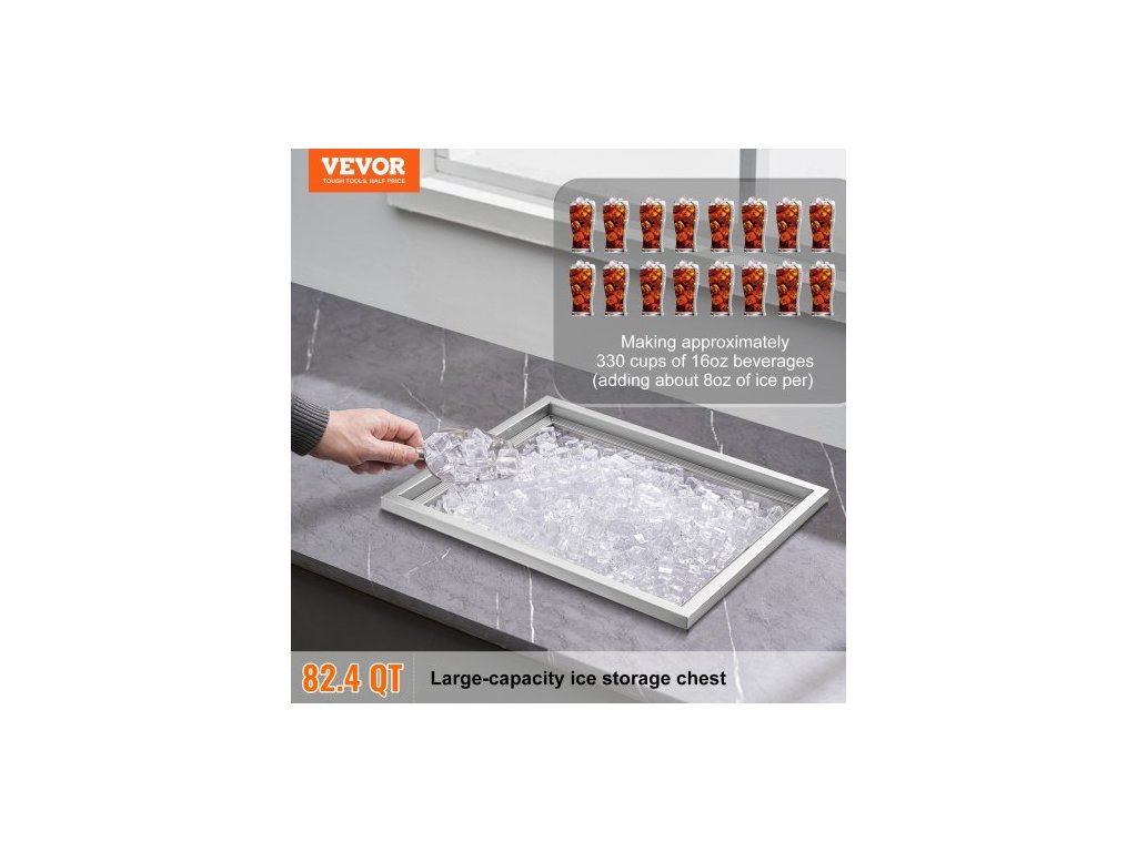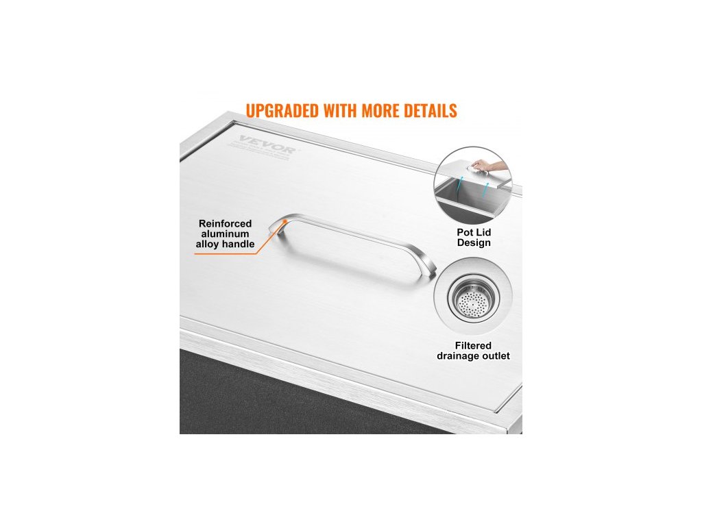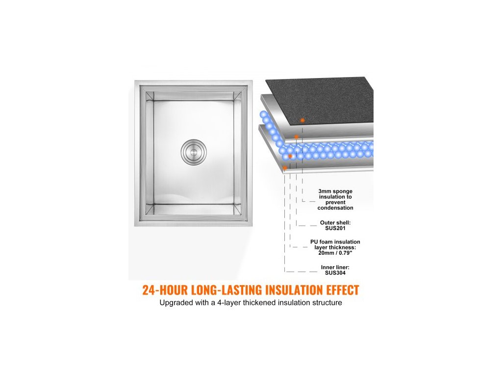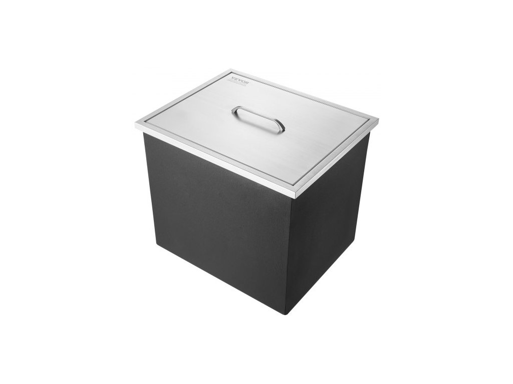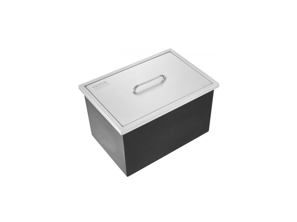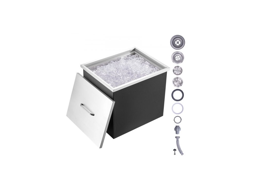 Chladič ledu, nerezová ocel, rozměry 21"D x 17"Š x 18"V, komerční nádoba na led s krytem, venkovní kuchyňský ledový bar o objemu 40 qt, součástí balení je odtoková trubka a odtoková zátka, na studené víno a pivoZabudovaná nádoba na led