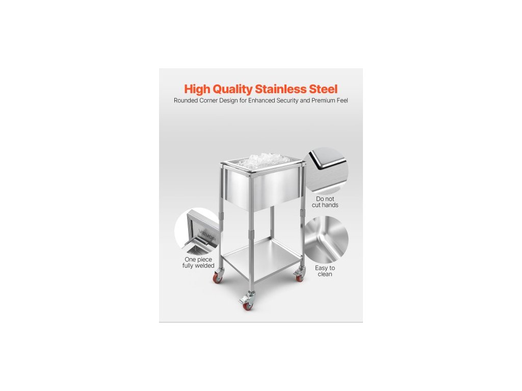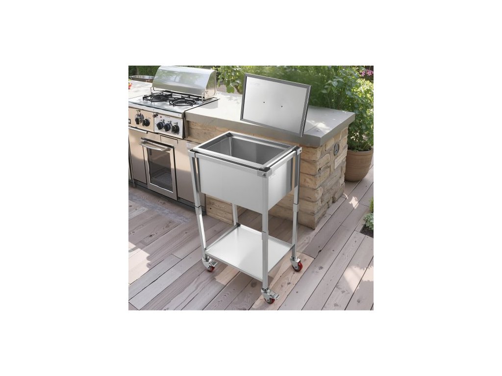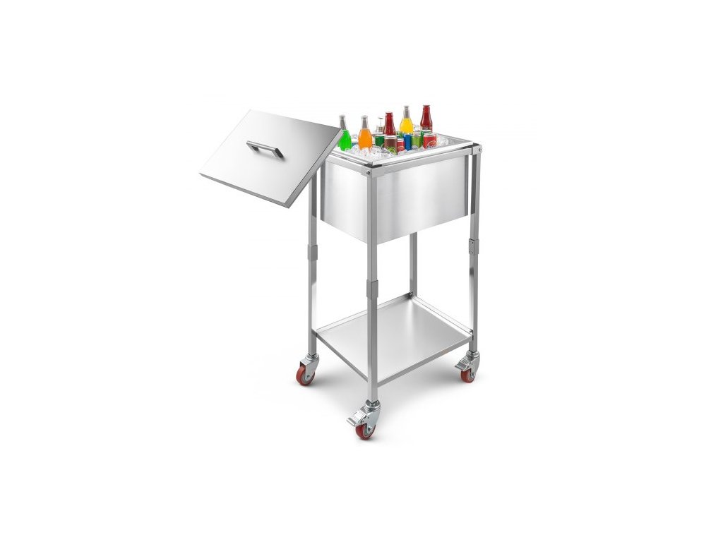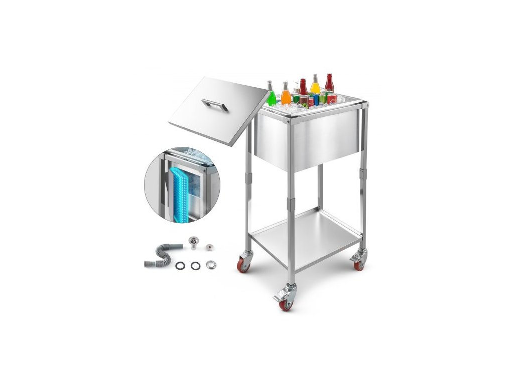 Chladicí vozík s kolečky, 22"D x 16"Š x 38"V (553 x 405 x 970 mm), nerezová chladicí nádoba na kolečkách, 31l venkovní chladicí vozík s policí, pro terasu, zahradu, párty barVíko na hrnec
