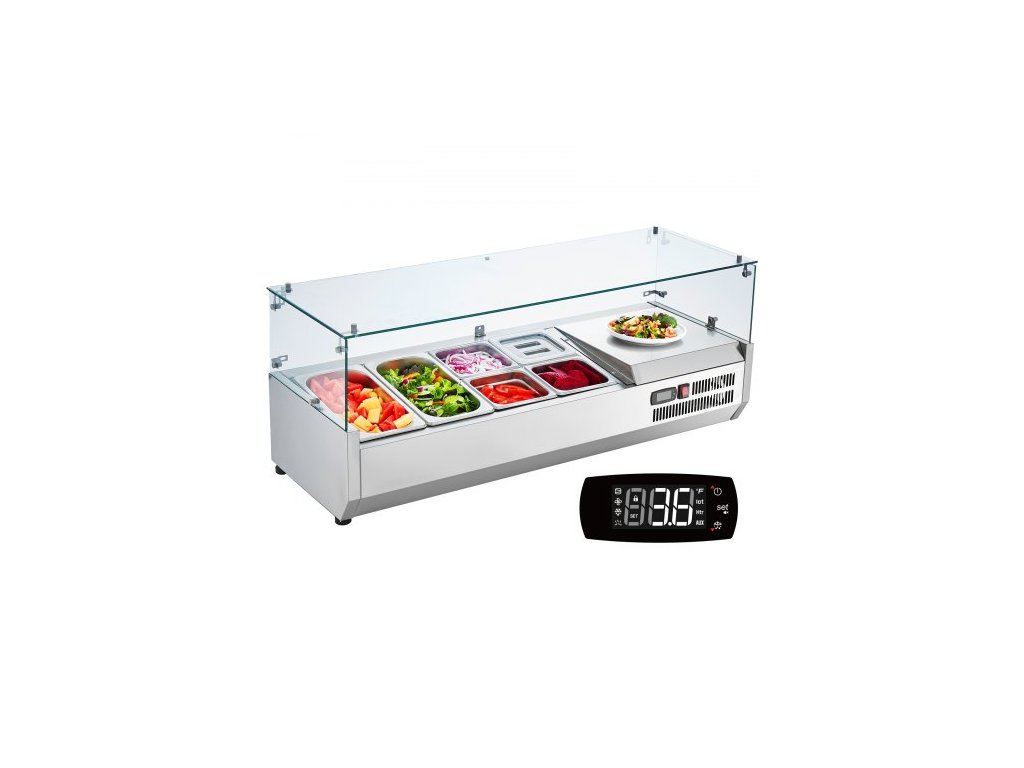 Chlazená stanice na přípravu koření, 140W stolní chlazená stanice na koření, 140W, s 2 1/3 pánvemi a 4 1/6 pánvemi, tělo z nerezové oceli 304 a víko z PC, stůl na přípravu sendvičů se skleněným krytem, CEEfektivní chlazení