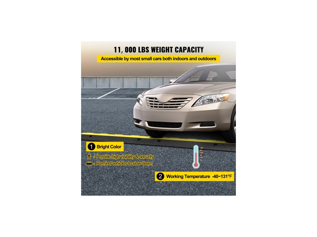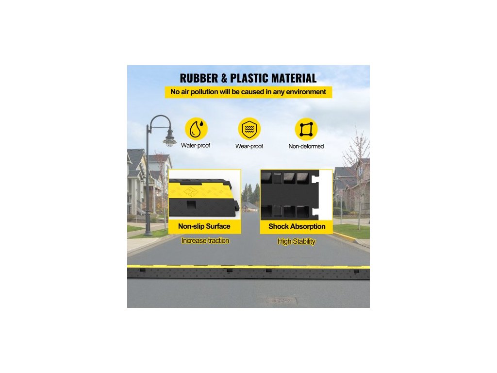 Chránič kabelů pro rampu 101x24,5x5 cm, 5 kusů, 2 kanály pro zpomalovací prahy, gumový modulární zpomalovací prah, nosnost 4989,5 kg, ochranný drátěný kabel, gumový dopravní zpomalovací prah, nájezdová cesta, chránič kabelů, 2 kabelové kanály, nosnost 11 000 liber, gumový a PVC kryt, odklápěcí konstrukce, modulární blokovací spojení, všestranné použití, hmotnost položky (každý): 5 kg, nosnost: 4 989 kg, rozměry jednoho kanálu: 3,2 x 3,1 cm, počet kusů: 5 kusů, počet kanálů: 2, barva: černá + žlutá, model: VV-2CGXB-5PCS, materiál: guma + PVC, Rozměry výrobku: 101 x 24,5 x 5 cmDoplňkové parametry