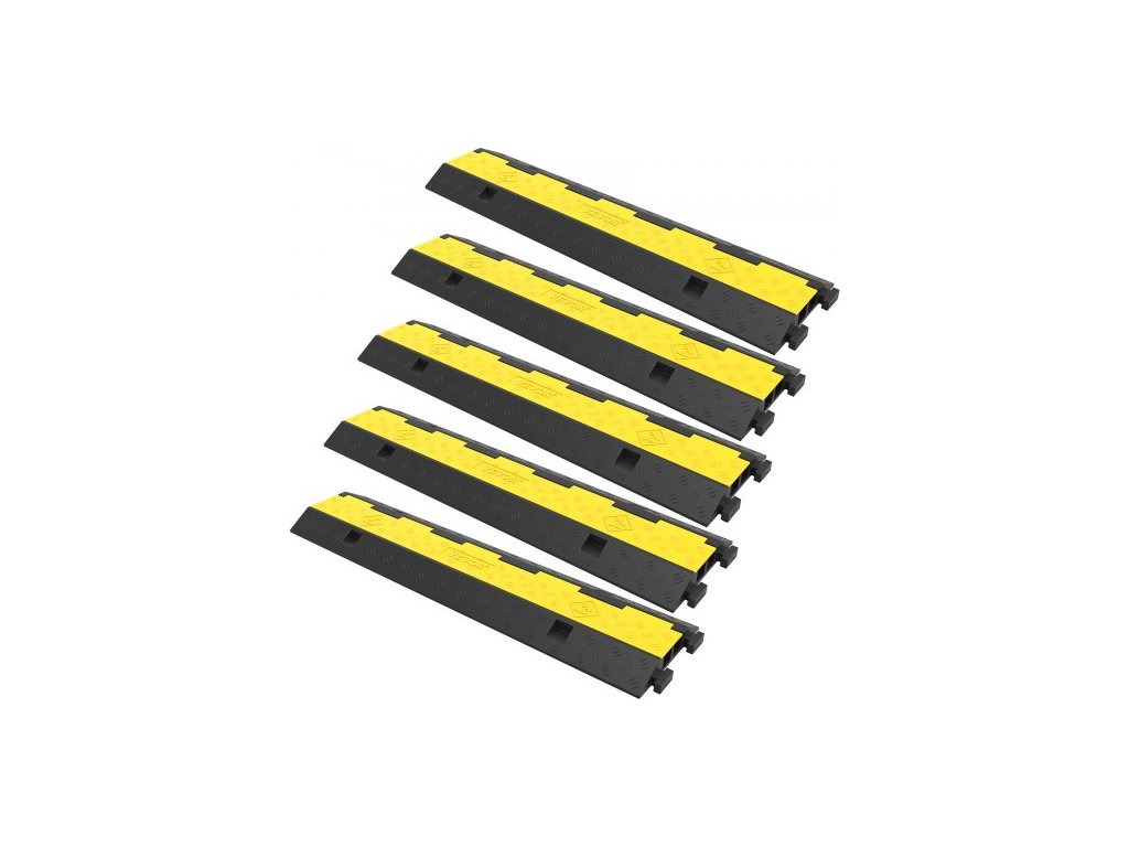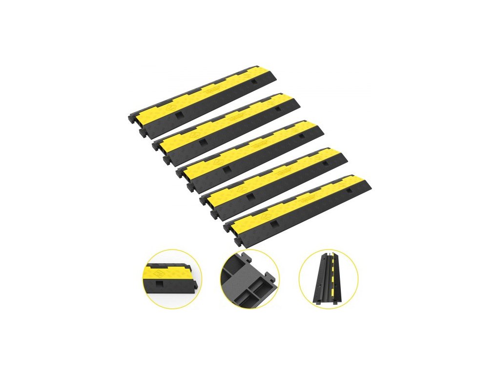 Chránič kabelů pro rampu 101x24,5x5 cm, 5 kusů, 2 kanály, zpomalovací prahy, gumové modulární zpomalovací prahy, jmenovitá nosnost 4989,5 kg, ochranný drátěný lanko, nájezd, příjezdová cesta, gumové dopravní zpomalovací prahy, chránič kabelů