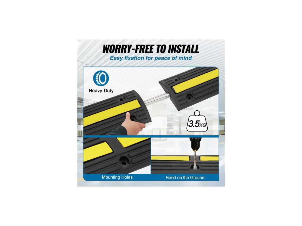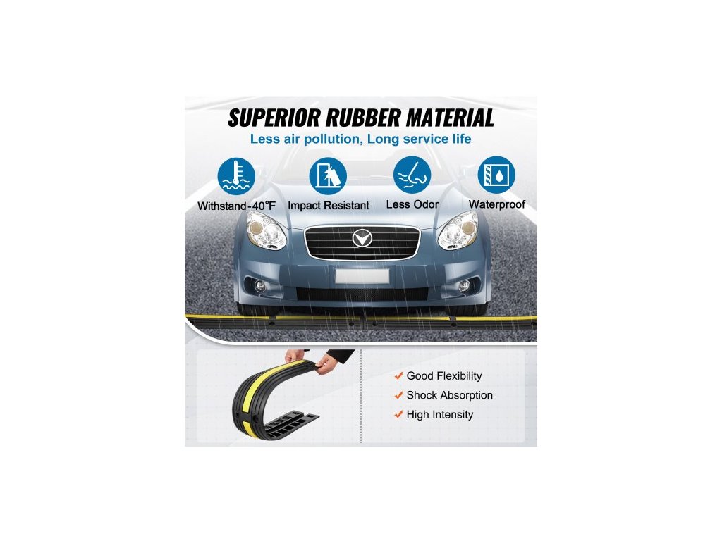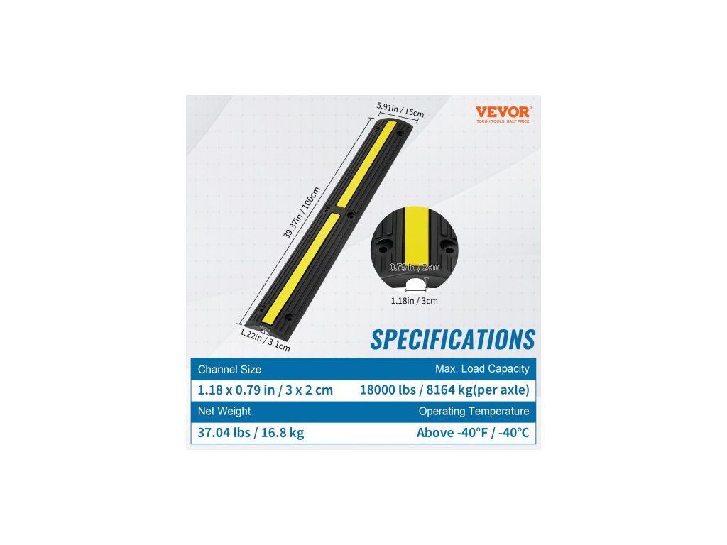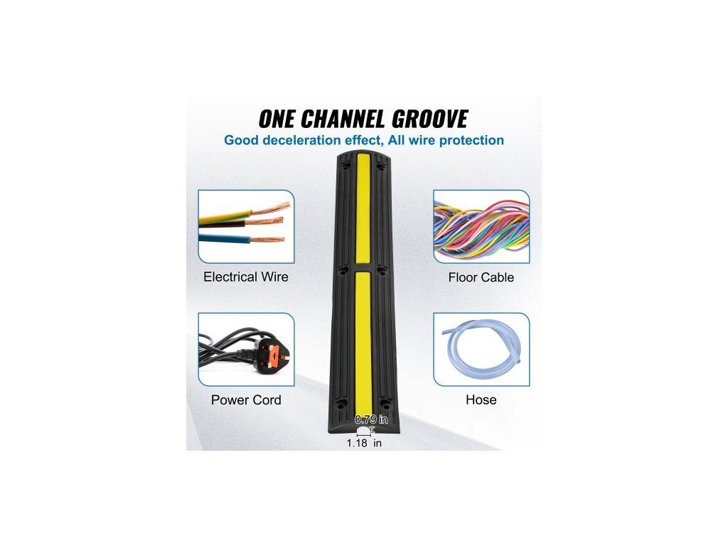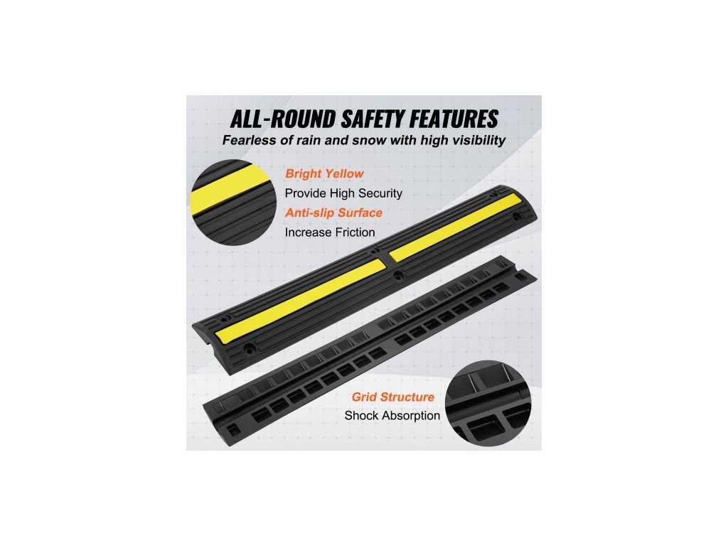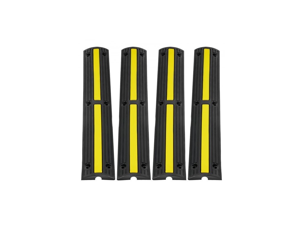 Chránič kabelů, rampa 100x15x3,1 cm, balení 4 kusů po 1 kanálu, nosnost 8164,7 kg/náprava, odolné gumové zpomalovací prahy, ochrana kabelů a kabelů na podlahu, kryt kabelu, pro obytné oblasti, soukromé garáže, zahradyZabezpečení kabelů