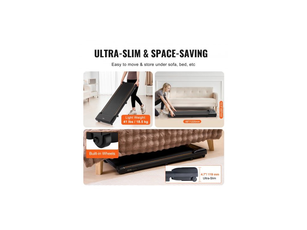 Běžecká podložka, Běžecký pás pod stůl pro domácí kancelář, Pracovní běžecký pás, Přenosná lehká běžecká podložka, Nosnost 120 kg, 2,5 HP, S dálkovým ovládáním a LED displejemZmírňuje nárazy kolen