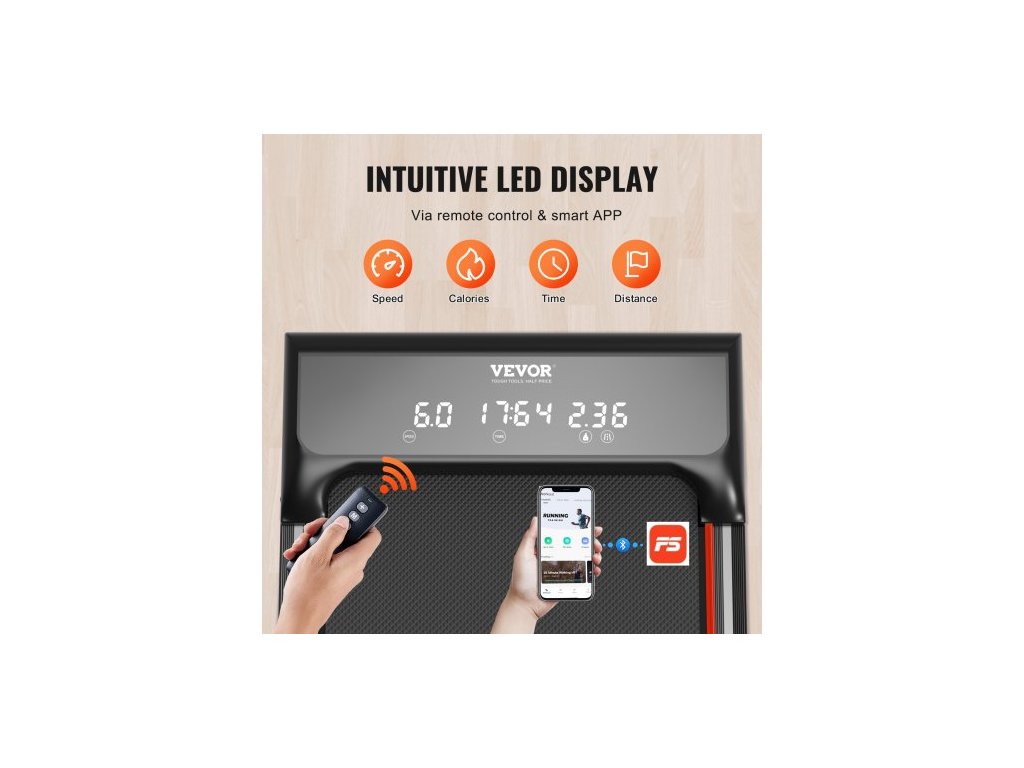 Běžecká podložka, běžecký pás pod stůl se sklonem, funkční chodící běžecký pás pro domácí kancelář, nosnost 120 kg, přenosná chodící podložka 2,5 HP, s dálkovým ovládáním, LED displejem a BluetoothZmírňuje nárazy kolen