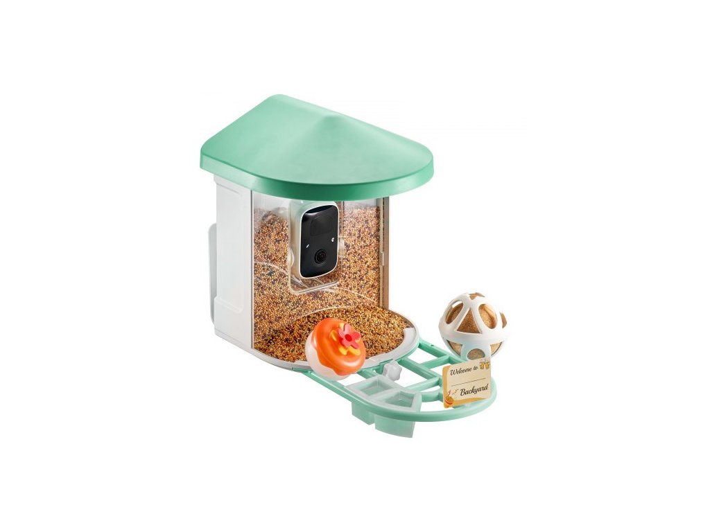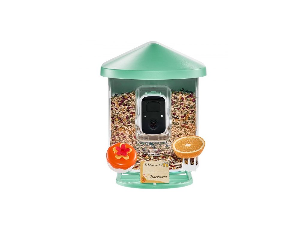 Chytré krmítko pro ptáky s kamerou, 2K HD AI identifikuje více než 10 000 druhů ptáků, solární kamera pro pozorování ptáků s automatickým snímáním a okamžitým upozorněním, bezdrátové venkovní krmítko ideální pro milovníky ptáků (zelená)Odplaší veverky