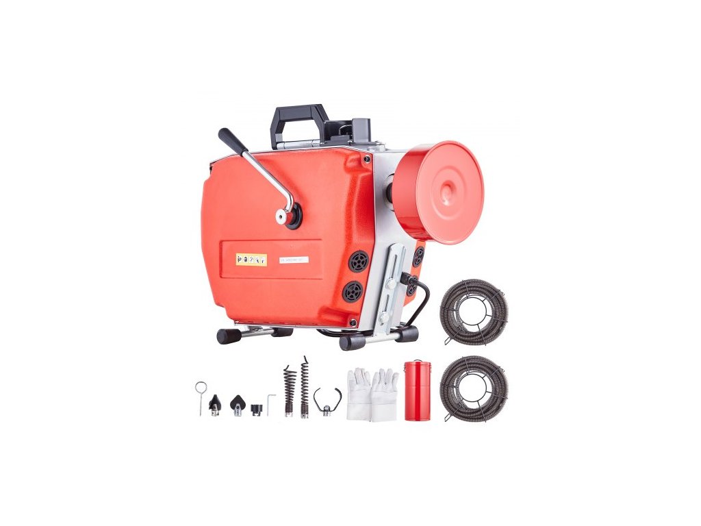 Čistič odpadů 120 stop x 7/8 palce, elektrický kanalizační šnekový dopravník 420 W s ručním podáváním - se 6 řeznými noži, 2 ocelovými lany (120' x 7/8" a 18' x 3/8") a ovládáním ve směru/proti směru hodinových ručiček pro potrubí o průměru 1,9" až 6