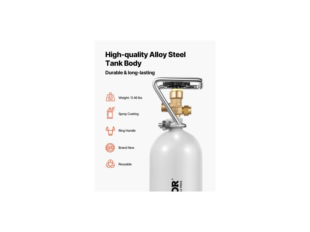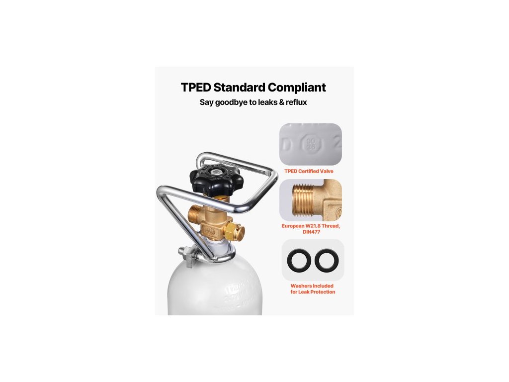 CO2 láhev, 4,41 lbs Nová legovaná ocelová láhev, CO2 vzduchová láhev s šedým nástřikem, ventil DIN477, rukojeť a nastavitelný tlak, plynová láhev s certifikátem TUV pro výčep piva a výrobník sodyPlyn není součástí dodávky