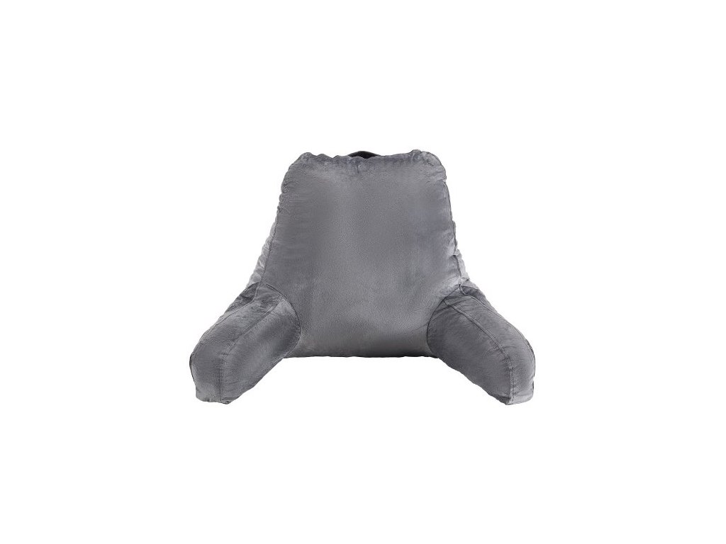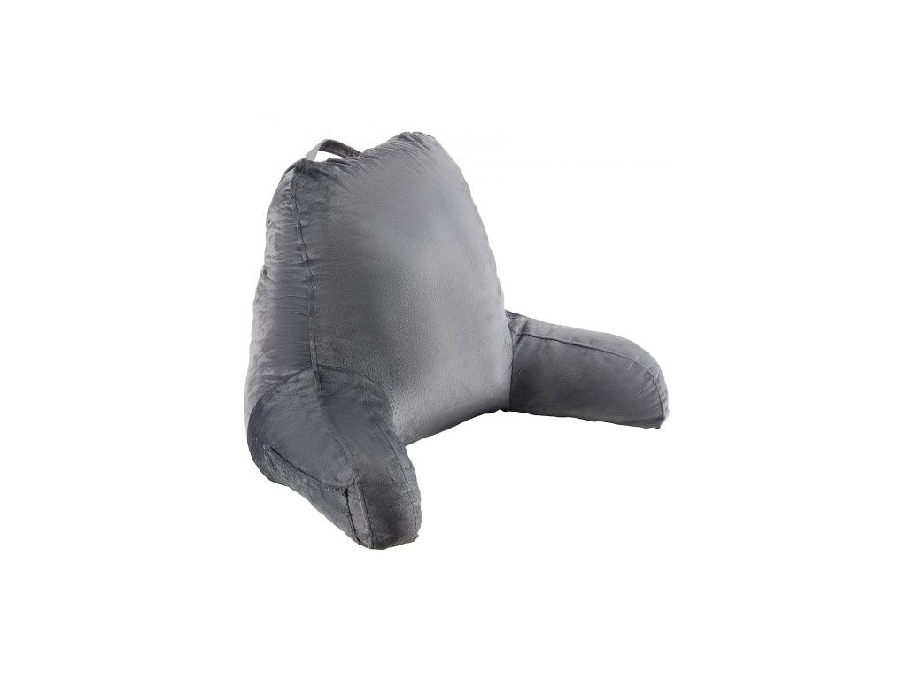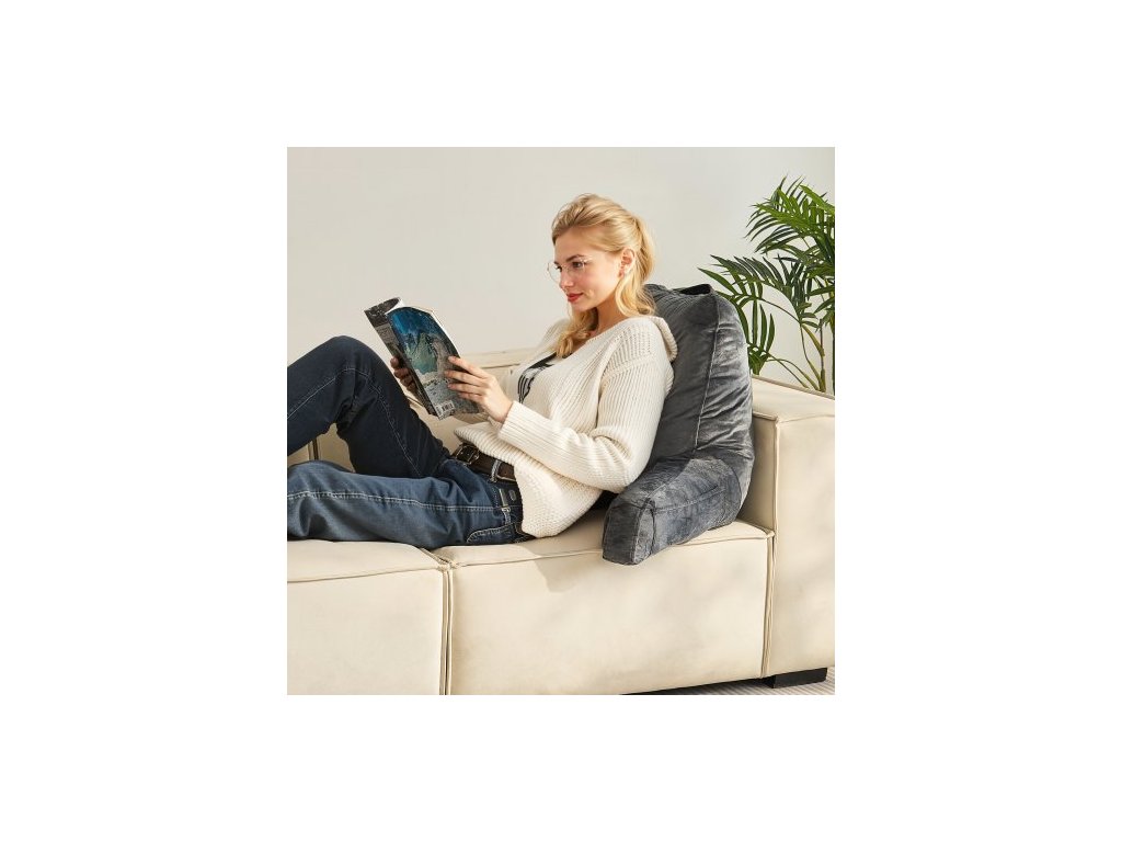 Čtecí polštář , velký polštář na postel s drcenou paměťovou pěnou, zádový polštář se 3 kapsami a pratelným krátkým sametovým potahem, horní část s rukojetí, pro sledování televize, čtení, hraní her, odpočinek, šedýPrémiová elastická paměťová pěna