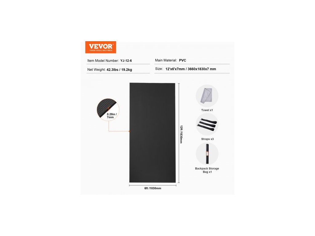 Rozměry: 12x6 stop / 3660x1830 mm,Číslo modelu položky: YJ-12-6,Čistá hmotnost: 42,3 lbs / 19,2 kg,Hlavní materiál: PVC,Vhodné pro: 3-4 osoby