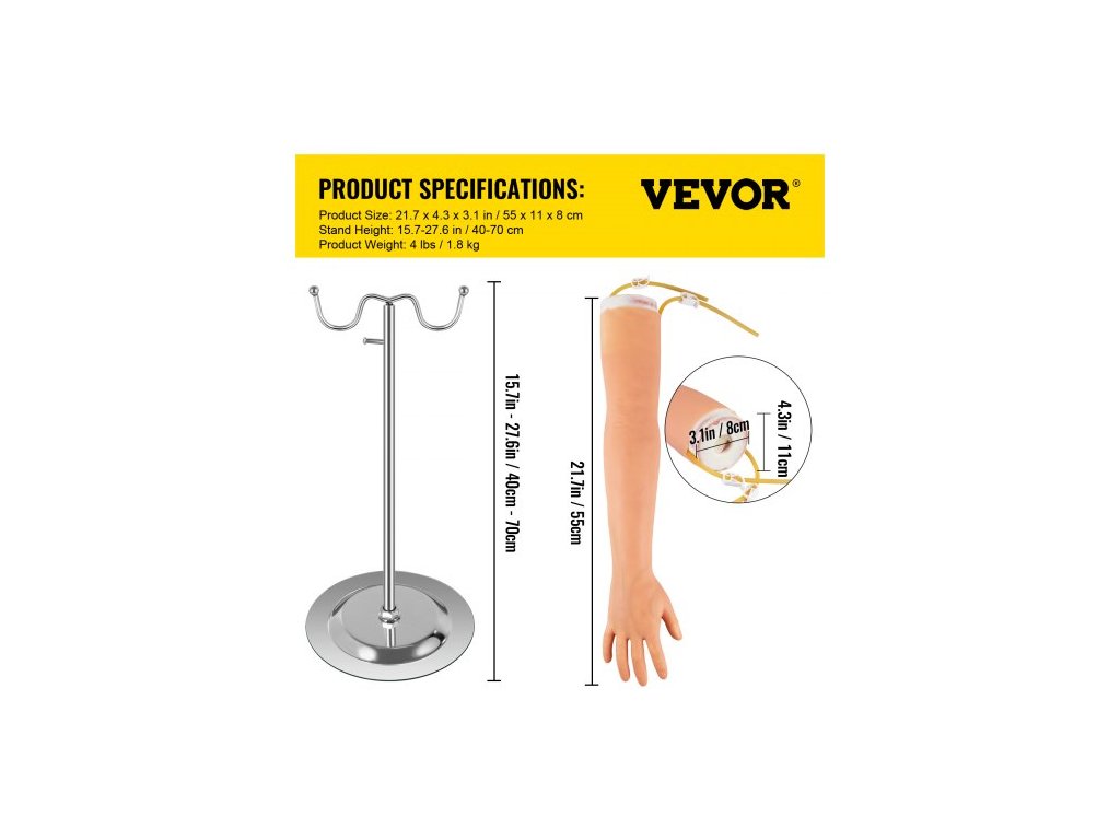 Materiál cév: Latex,Materiál stojanu: Ocel,Model: JMCC-12,Rozměry ramene: 55 x 11 x 8 cm,Hmotnost výrobku: 1,8 kg,Výška stojanu: 40–70 cm (nastavitelná)
