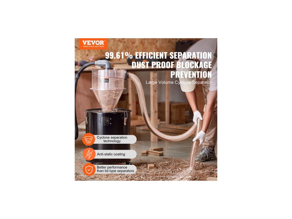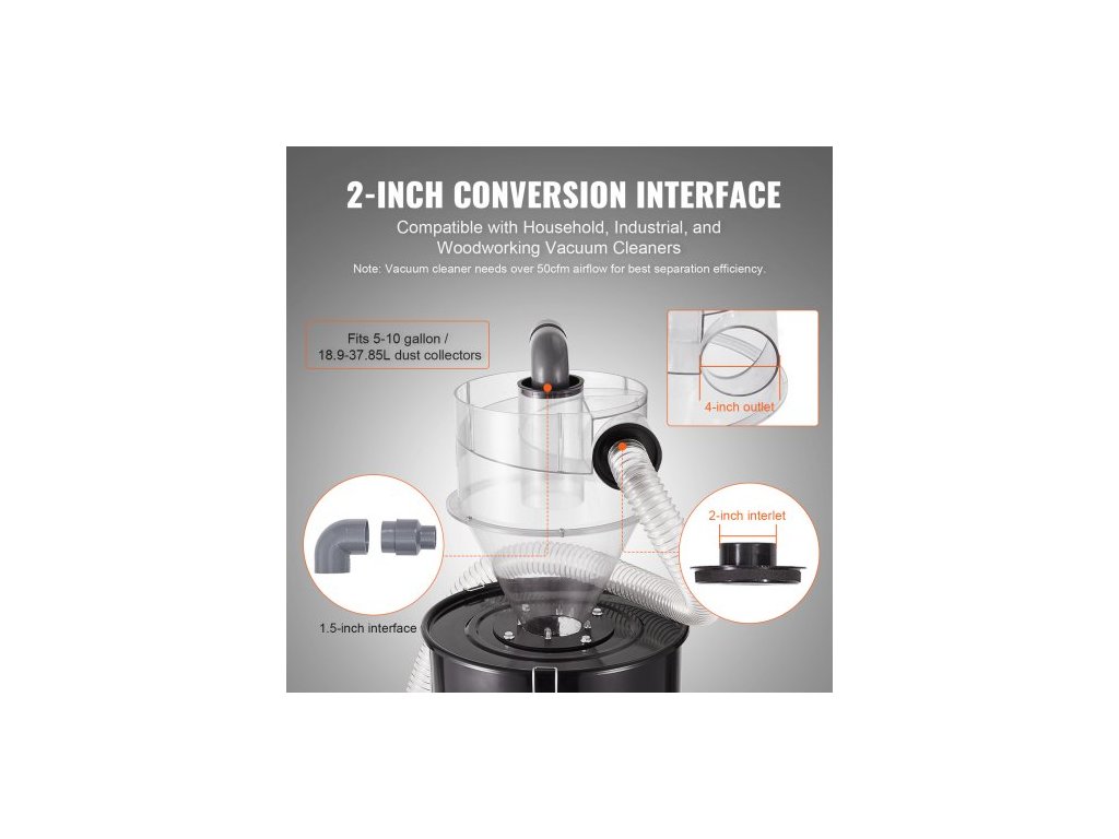 Cyklonový odlučovač prachu , dodatečná montáž 4" cyklónového odlučovače pro sběrače prachu, ABS odlučovač prachu s 2" otvorem s vnějším průměrem, konektor a hadice pro mokré/suché vysavače, pasuje na nádrže 18,9-37,85 l (nádrž není součástí dodávky)