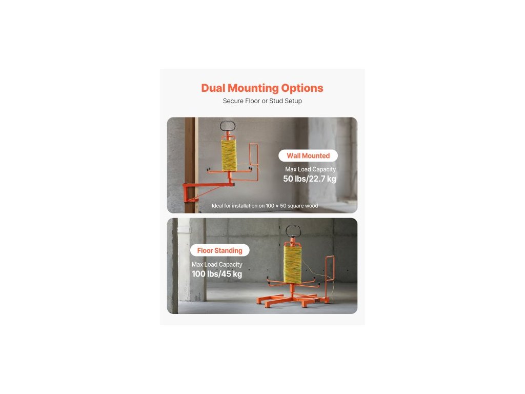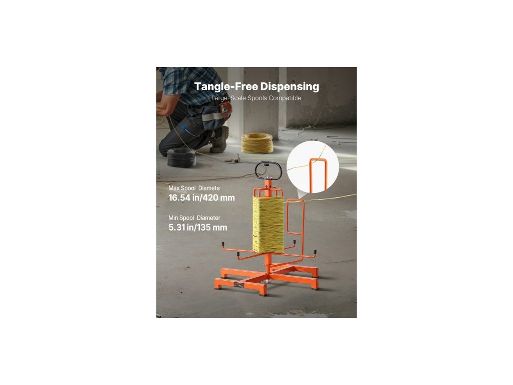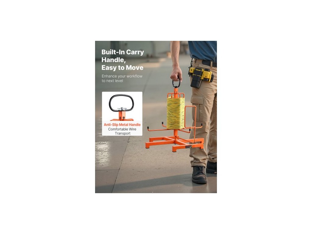 Dávkovač kabelů , montáž na podlahu nebo na sloupek, stojan na cívky drátu, přenosný stojan na dráty s protiskluzovou kovovou rukojetí pro přepravu kabeláže, otočné očko, pro elektrické, průmyslové a maloobchodní použitíSnadné ovládání