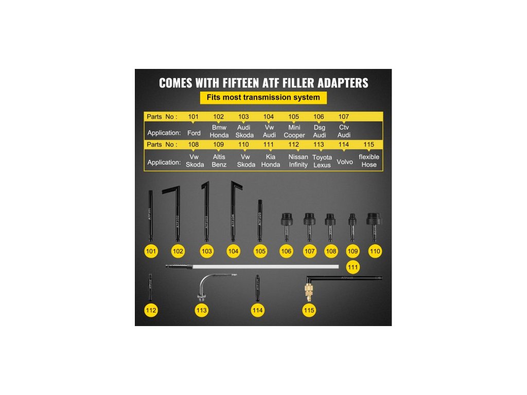 Dávkovač manuálního plnění převodové kapaliny , odvzdušňovač oleje a kapaliny, velkoobjemový 7,5 litr, sada nářadí pro čerpadlo převodové kapaliny s 15dílnými adaptéry pro plnění ATF