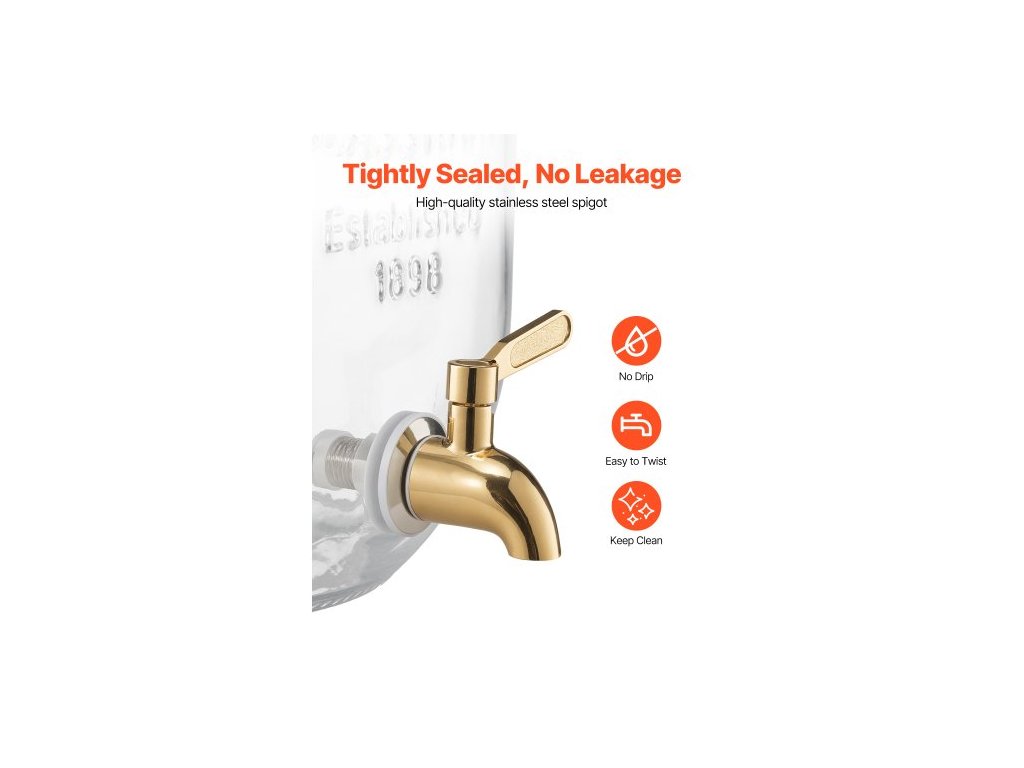 Dávkovač nápojů , balení 2 ks 8l dávkovačů nápojů na večírky, skleněný dávkovač džusu s kovovým stojanem, kohoutek z nerezové oceli, nálevník, dávkovač ledového čaje, limonády a vody na večírkyNepřetržitý přívod nápojů