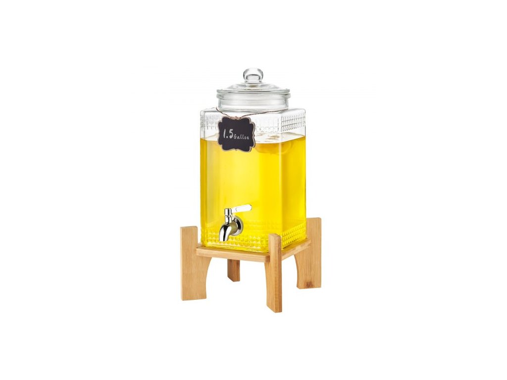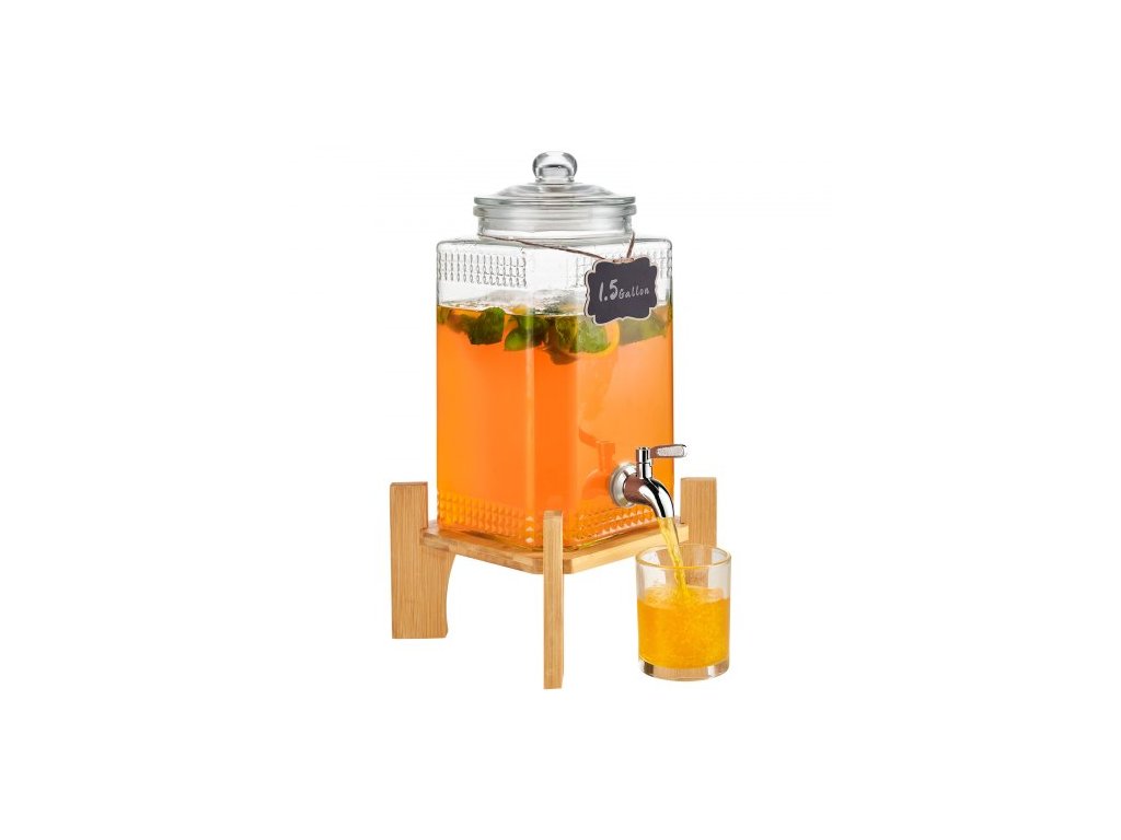 Dávkovač nápojů , dávkovače nápojů o objemu 5,5 l na večírky, skleněný dávkovač džusu se stojanem, kohoutek z nerezové oceli, dávkovač vody na ledový čaj, limonádu a džus, pro restaurace, hotely, večírkyVelká kapacita