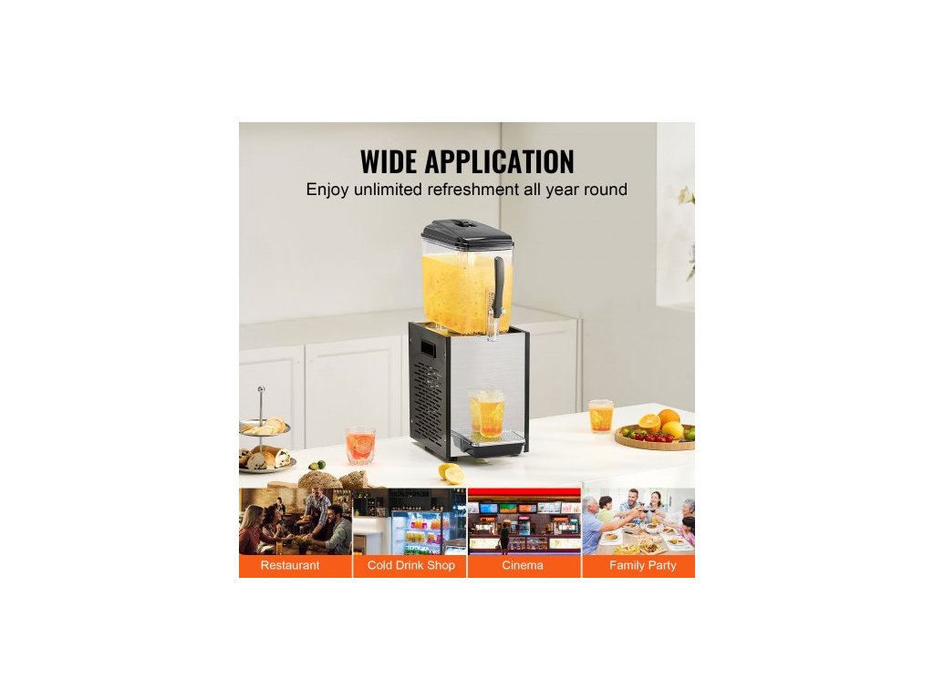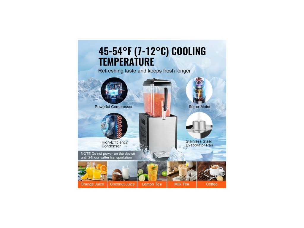 Komerční dávkovač nápojů , dávkovač džusu 12 l, 246W nerezová ocel 304 potravinářská výrobní linka na ledový čaj s teplotou chlazení 45°F-54°F, pro studené nápoje v restauraci, baru, pártyVelká kapacita