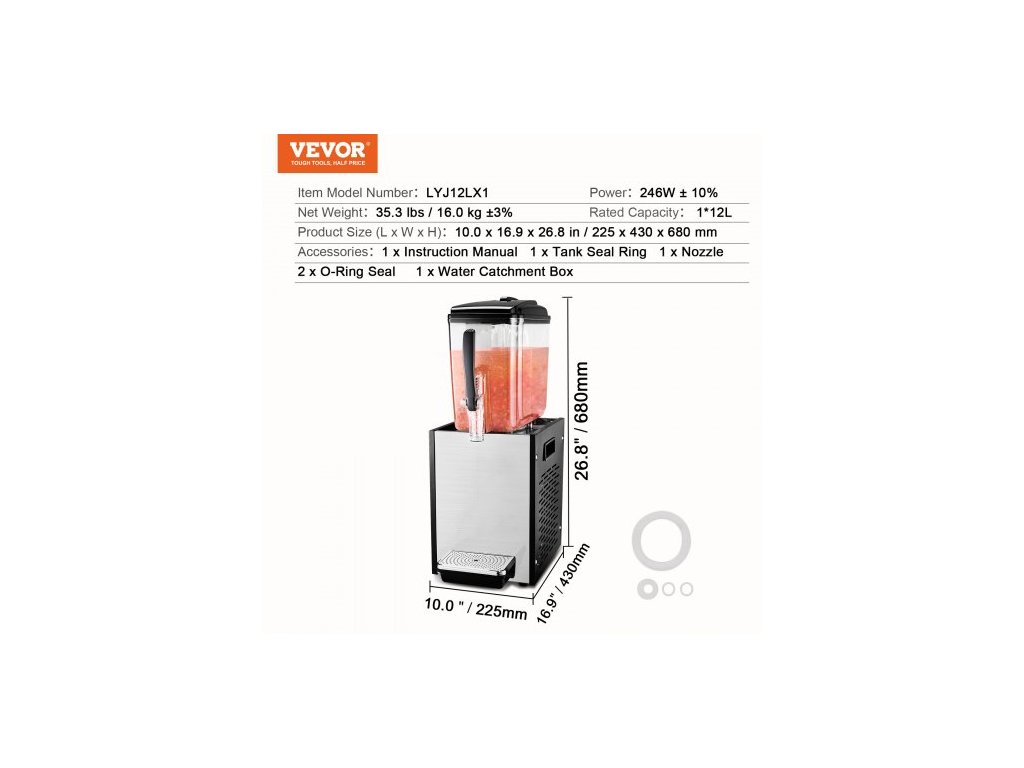 Jmenovitá kapacita: 1*12 l,Rozměry výrobku (D x Š x V): 10 x 16,9 x 26,8 palce / 225 x 430 x 680 mm,Číslo modelu položky: LYJ12LX1,Čistá hmotnost: 35,3 lbs / 16 kg,Příkon: 246W