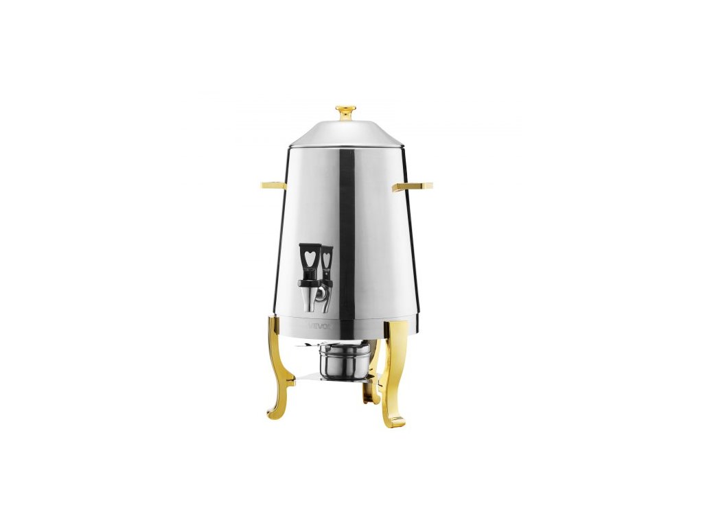 Dávkovač nápojů z nerezové oceli, 13l dávkovač nápojů s hořákem na alkohol, dávkovače teplých a studených nápojů s kohoutkem na kávu, čaj a horkou vodu, ideální pro restaurace, hotely, večírkyNepřetržitý přívod nápojů