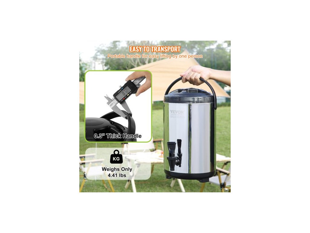 Dávkovač nápojů z nerezové oceli s izolací, 2 galony 7,6 litru, termální dávkovač horkých a studených nápojů s kohoutkem, vhodný pro horký čaj, kávu, vodu, restauraci, obchod s nápojiProstorná kapacita