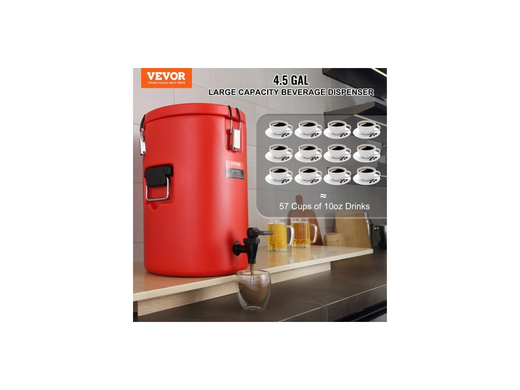 Dávkovač nápojů z nerezové oceli s izolací, 4,5 galonu / 17,2 litru, termální dávkovač horkých a studených nápojů s kohoutkem, vhodný pro potravinářské použití na horký čaj, kávu, vodu, restauraci, obchod s nápojiProstorná kapacita