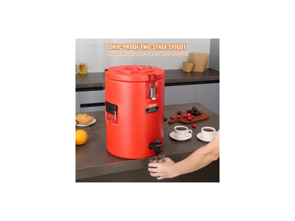 Dávkovač nápojů z nerezové oceli s izolací, 4,5 galonu / 17,2 litru, termální dávkovač horkých a studených nápojů s kohoutkem, potravinářský pro horký čaj, kávu, vodu, restauraci, obchod s nápoji