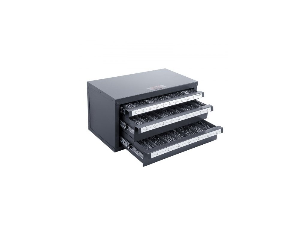 Dávkovač vrtáků , třízásuvková skříňka na vrtáky pro A až Z, ocelová skříňka na vrtáky se štítky, stohovatelný zásobník vrtáků pro uložení vrtáků