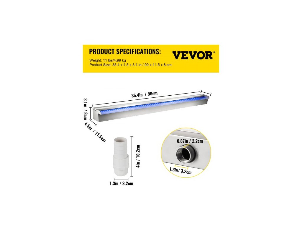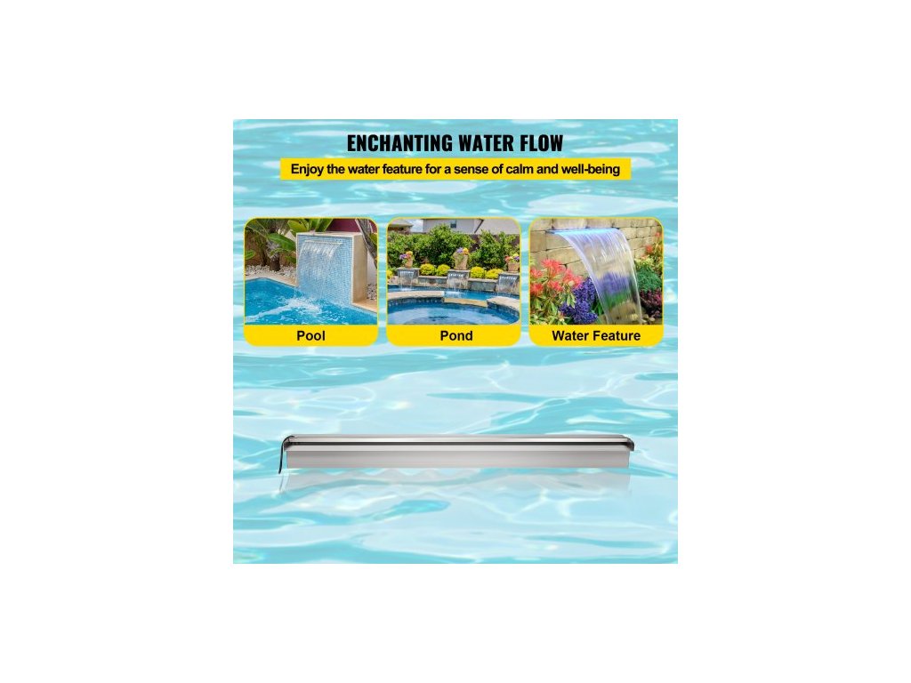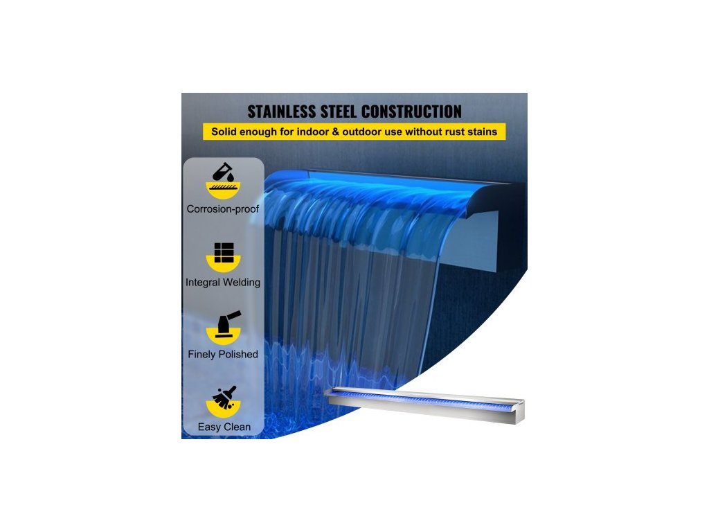 Dekorativní nerezová fontána s vodopádem o rozměrech 91 x 11,5 x 7,6 cm s LED páskovým osvětlením pro zahradní jezírko v interiéru i exteriéruMateriál: nerezová ocel