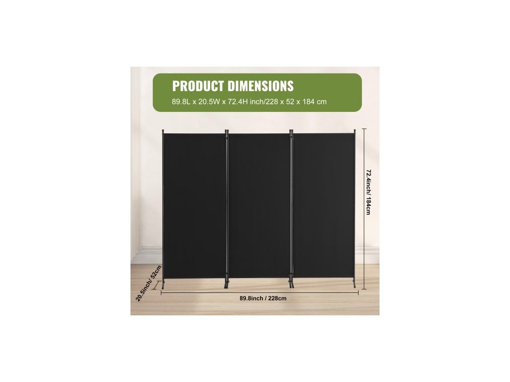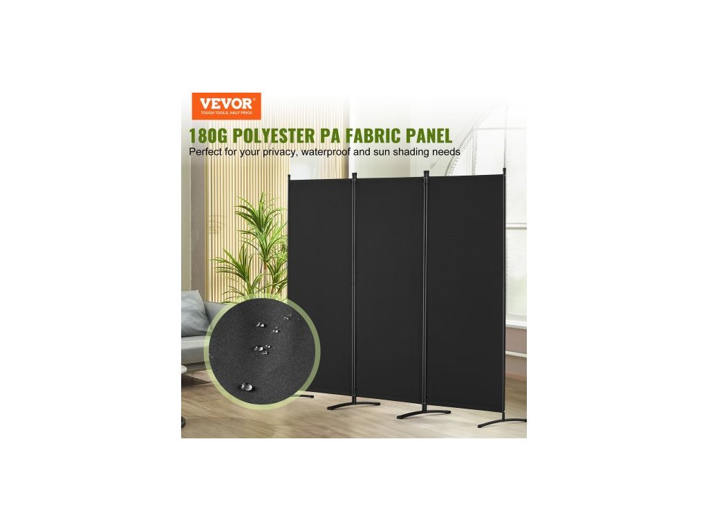 Dělicí stěna , 3panelové dělicí stěny a skládací zástěny pro soukromí, látkové dělicí stěny do kanceláře, ložnice, jídelny, pracovny, volně stojící, černáKvalita, které můžete věřit