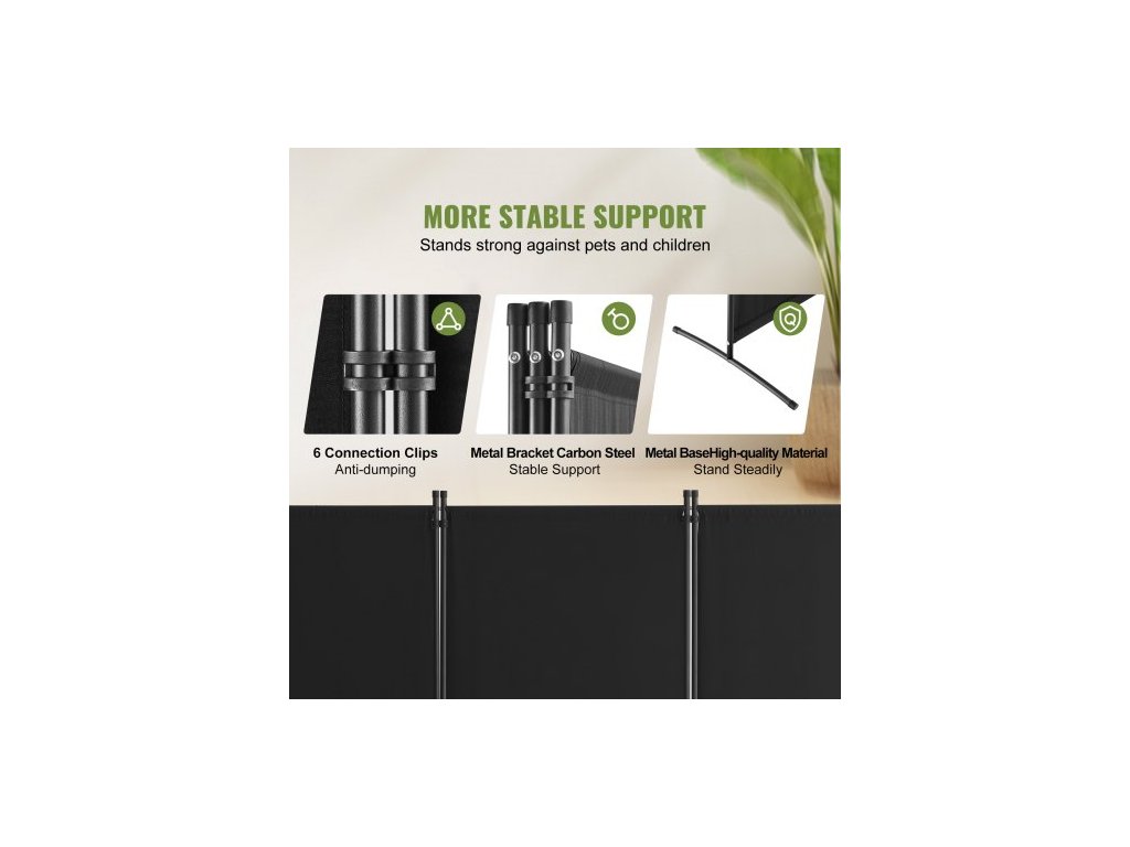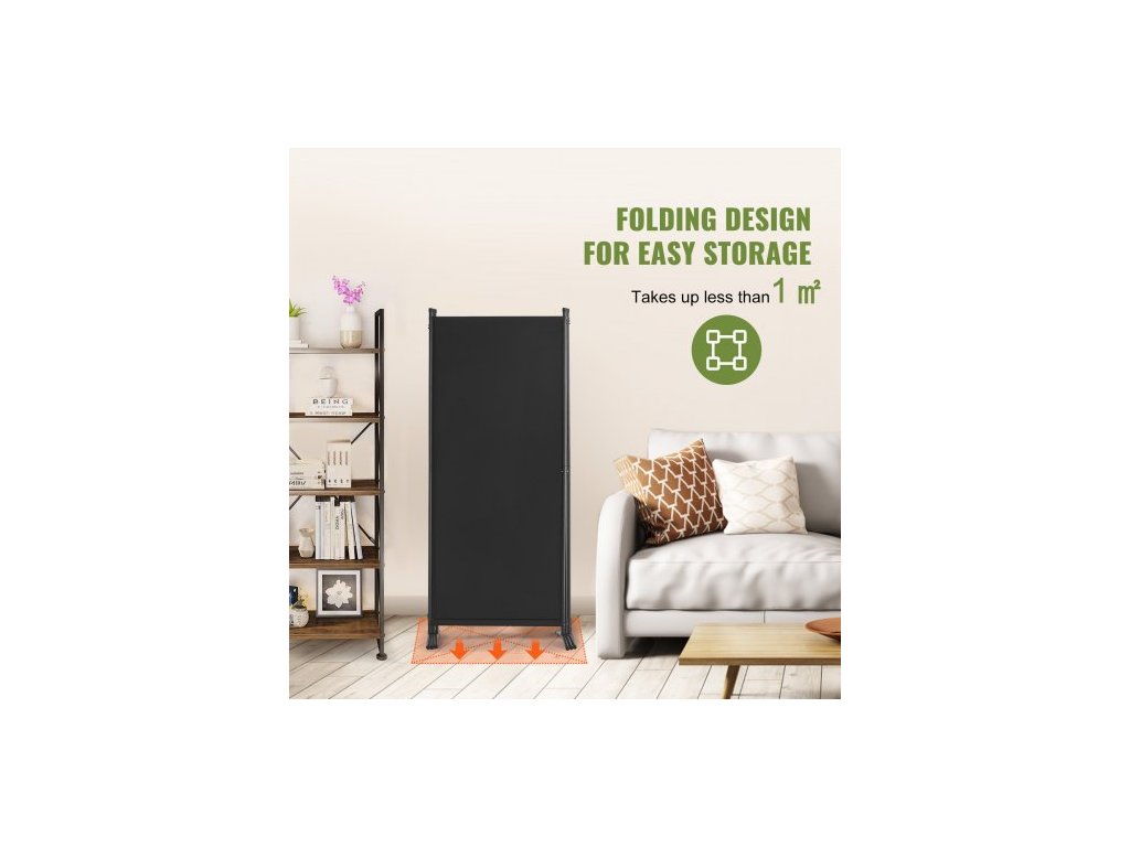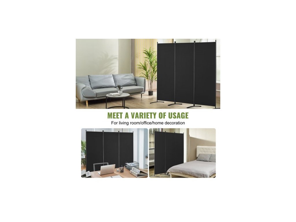 Dělicí stěna , 3panelové dělicí stěny a skládací zástěny na ochranu soukromí, látkové dělicí stěny do kanceláře, ložnice, jídelny, pracovny, volně stojící, černá