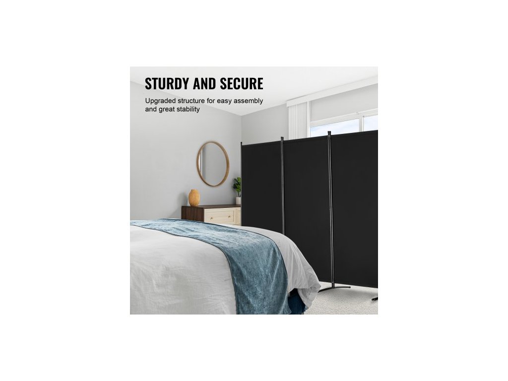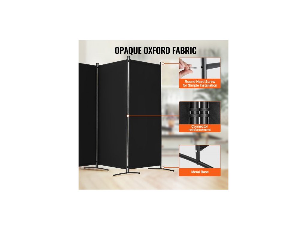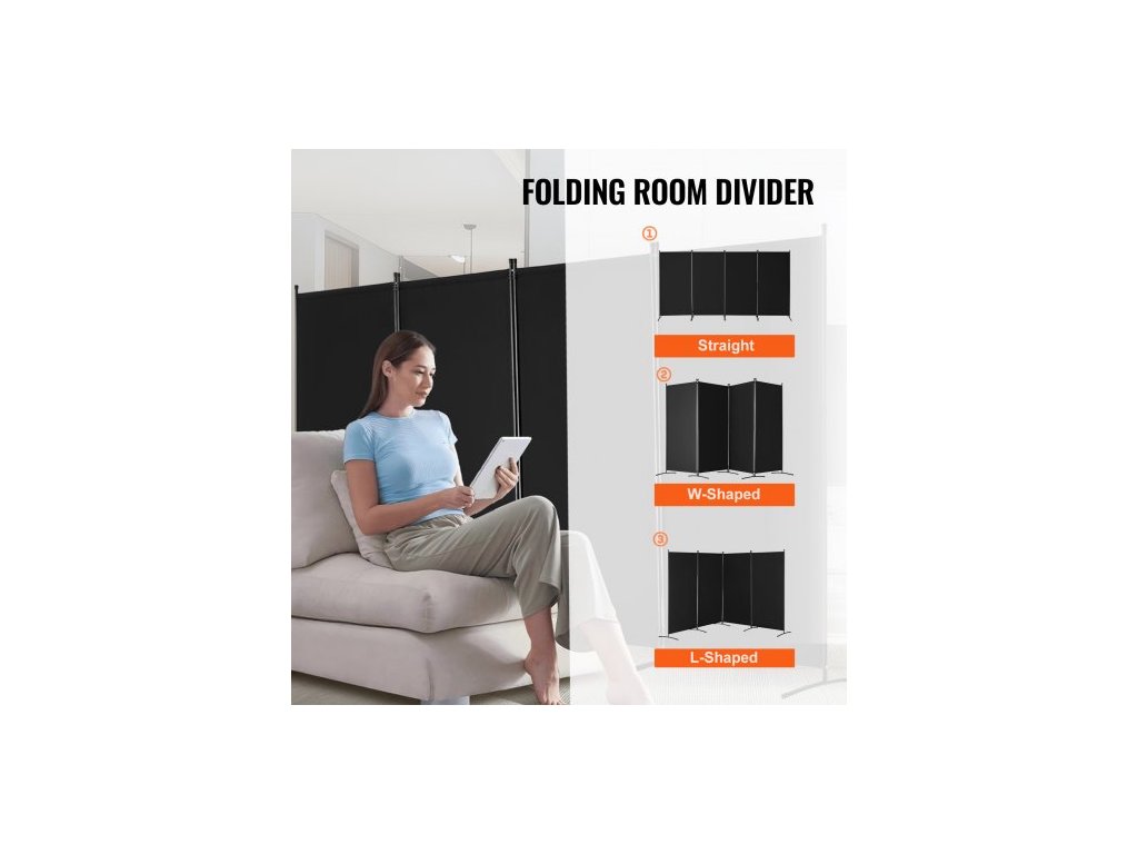 Dělicí stěna , 4dílná dělicí stěna, skládací zástěna na ochranu soukromí a přenosná dělicí příčka pro oddělení místností, volně stojící dělicí stěny do kanceláře, ložnice, pracovny, černá