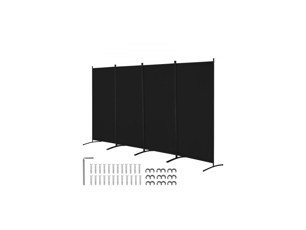 Dělicí stěna , 4dílná dělicí stěna, skládací zástěna pro soukromí a přenosná dělicí stěna pro oddělení místnosti, volně stojící dělicí stěny do kanceláře, ložnice, pracovny, černáMultifunkční dělicí stěna