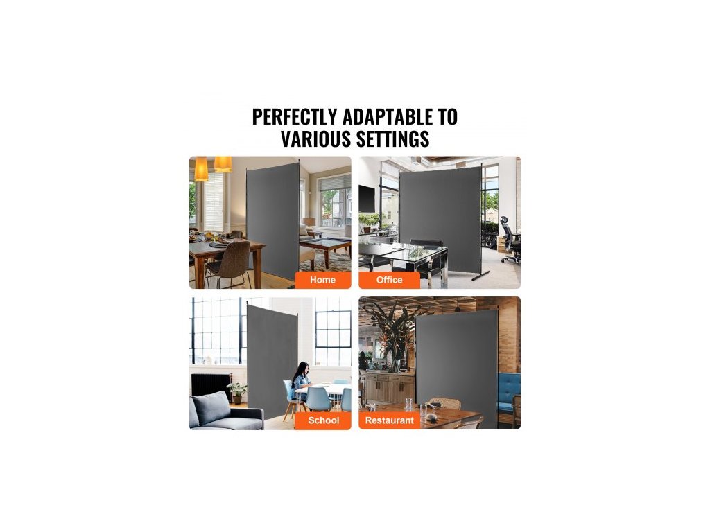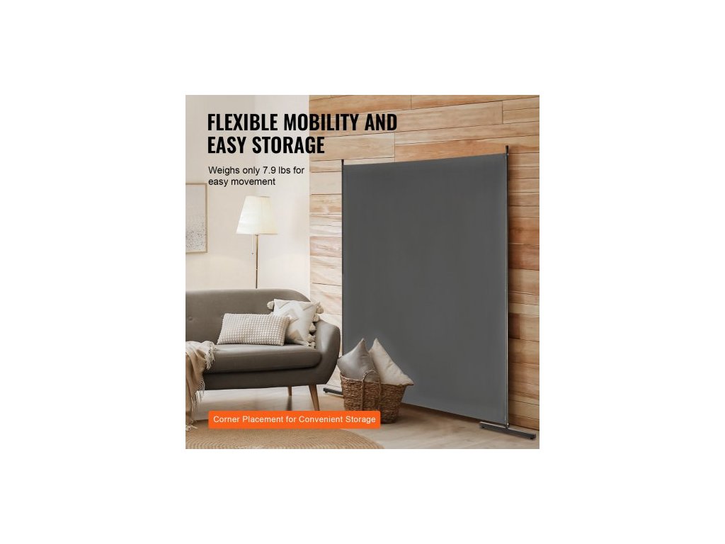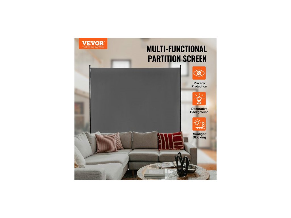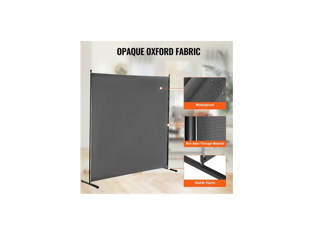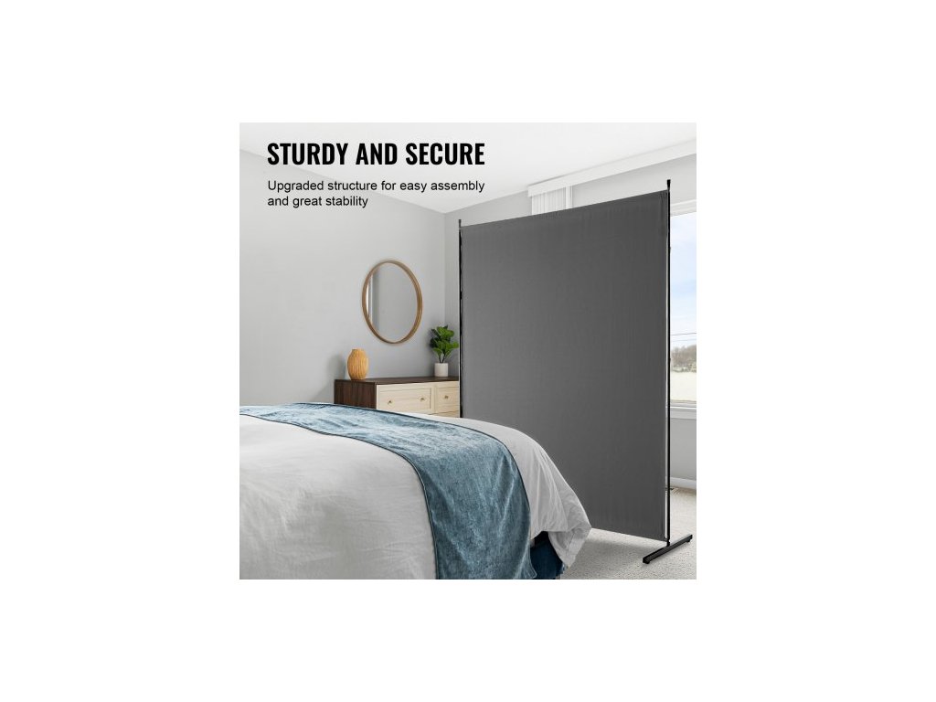 Dělicí stěna , Jednopanelová dělicí stěna, 1,8 m soukromá zástěna do interiéru, Dělicí stěna pro oddělení místností, Volně stojící dělicí stěna do kanceláře, ložnice, ŠedáMultifunkční dělicí stěna