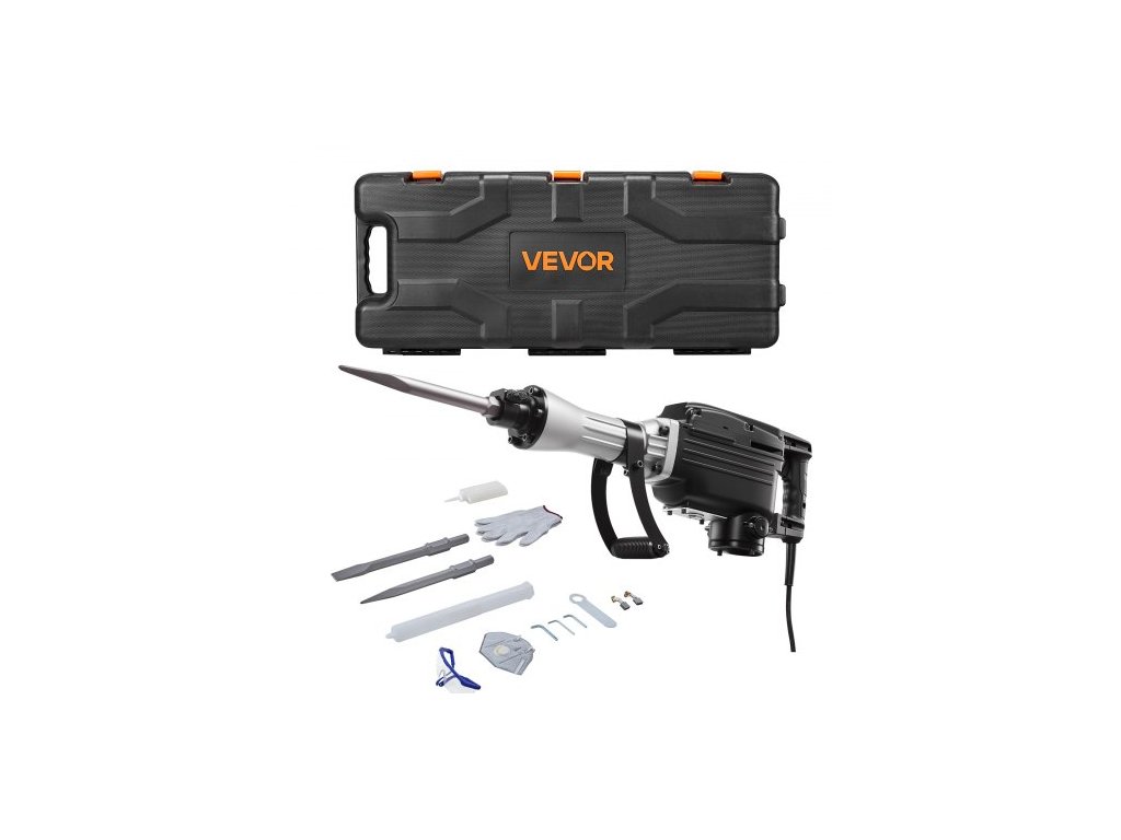 Demolition Jack Hammer, výkonné elektrické sbíjecí kladivo 2800 W, 1200 úderů za minutu, bourací kladivo na beton s hrotovým sekáčem, plochým sekáčem, přepravním pouzdrem, rukavicemi, na beton, zdi, cihly, dlaždice a základy