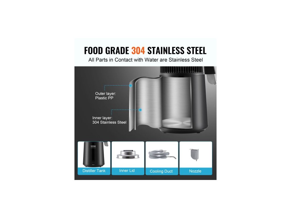 Destilační čistička vody 4L, pracovní deska, vnitřní strana z nerezové oceliVysoká účinnost