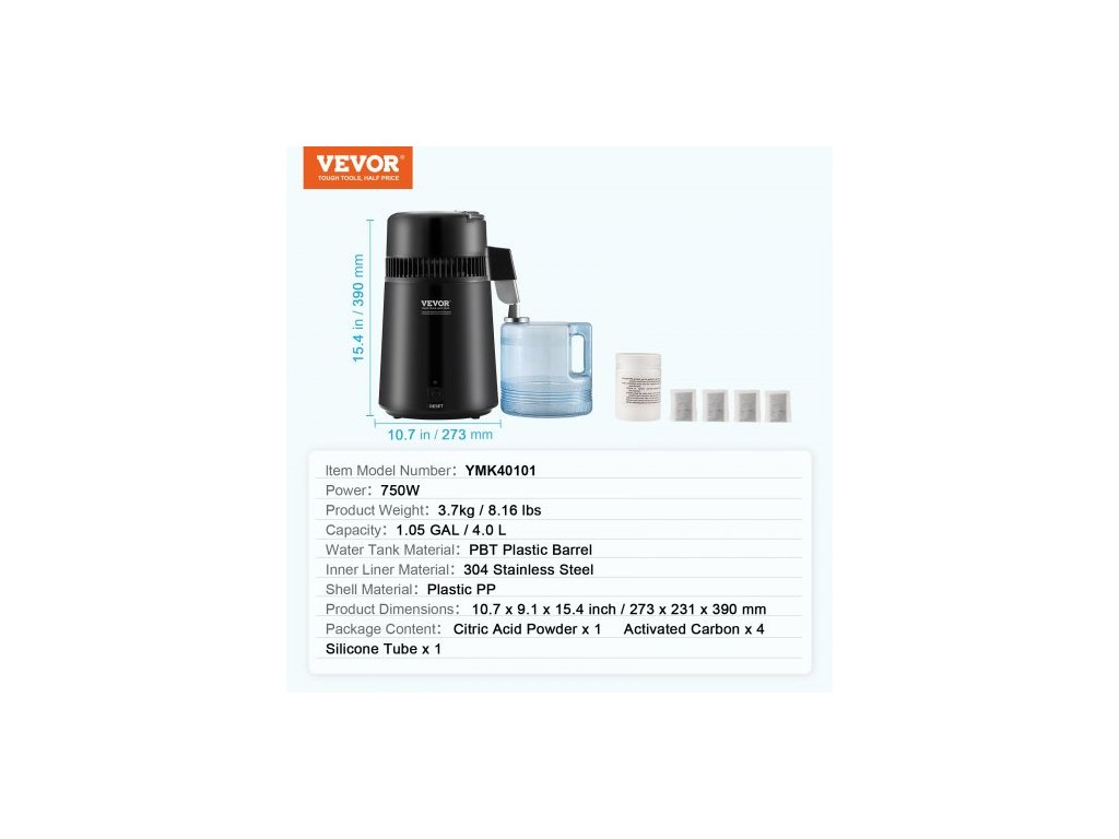 Materiál vnitřní vložky: nerezová ocel 304, objem: 1,05 GAL / 4,0 l, materiál nádrže na vodu: plastový válec PBT, číslo modelu: YMK40101, hmotnost výrobku: 3,7 kg / 8,16 lbs, materiál pláště: plast PP, výkon: 750 W