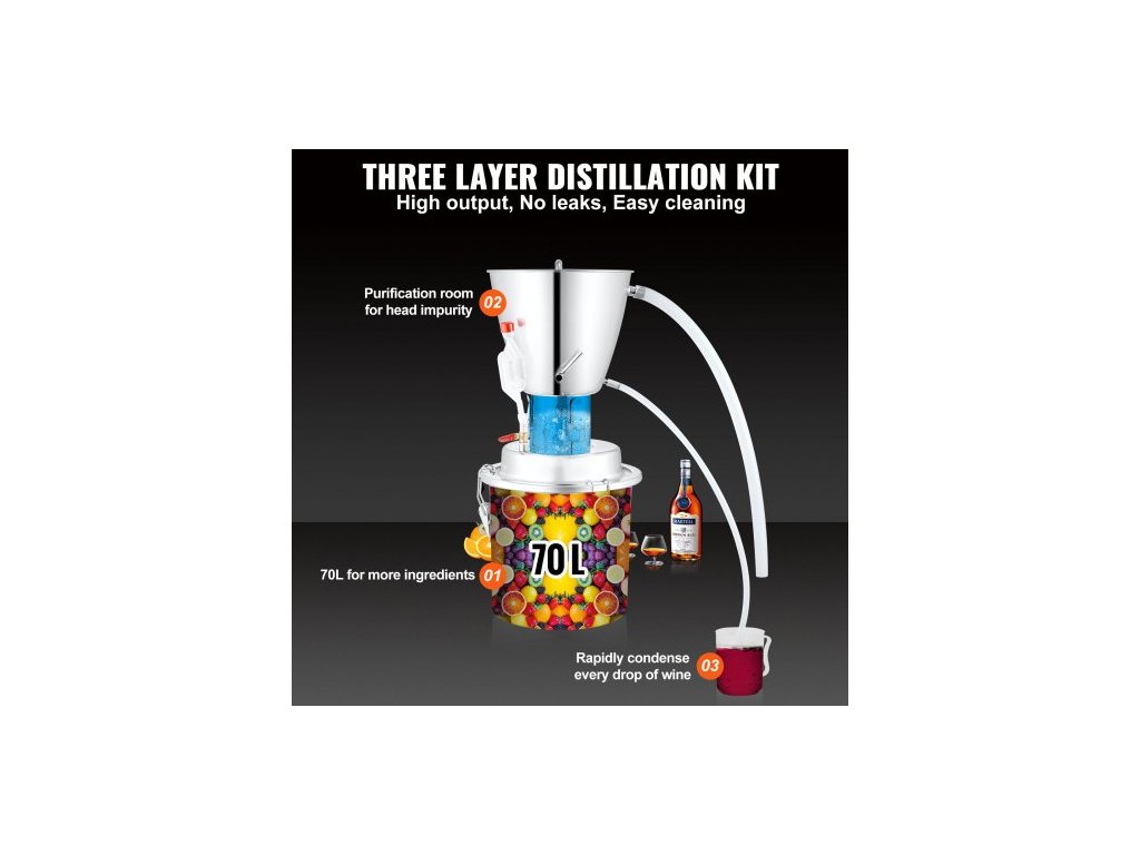 Destilátor vody 68,1 l, zařízení pro vaření piva, domácí destilační přístroj