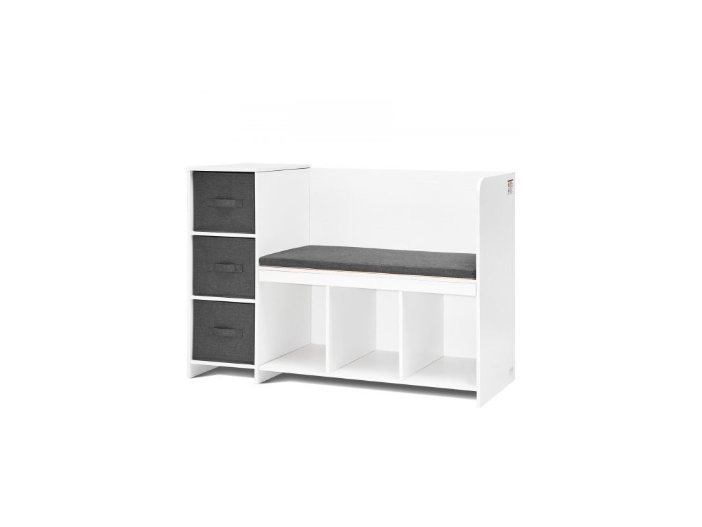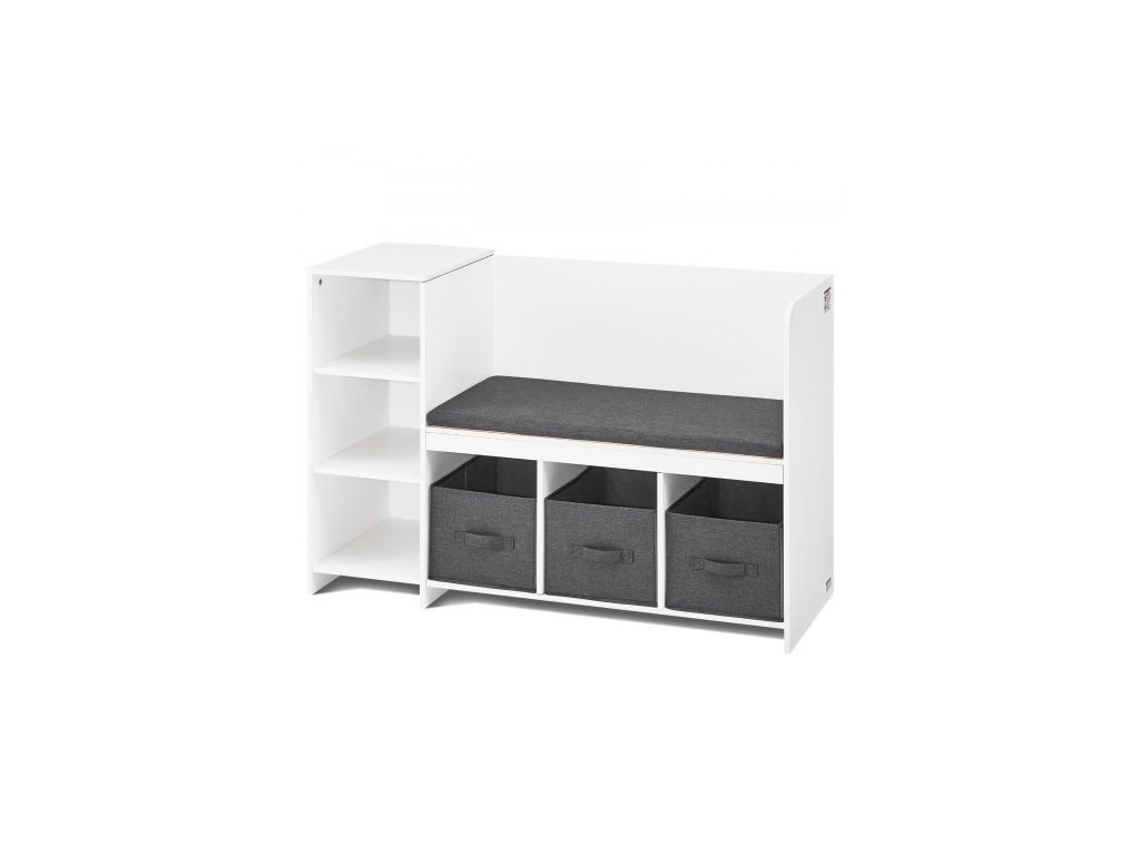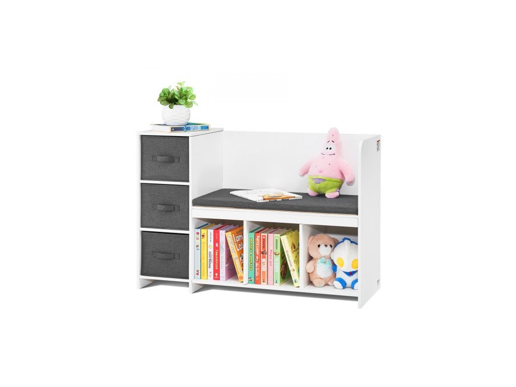 Dětská čtecí lavice , knihovna a regál pro batolata s odnímatelným sedákem, úložný organizér se 6 přihrádkami a 3 zásuvkami, ideální do herny, ložnice, obývacího pokoje nebo předsíně, bíláMultifunkční lavice