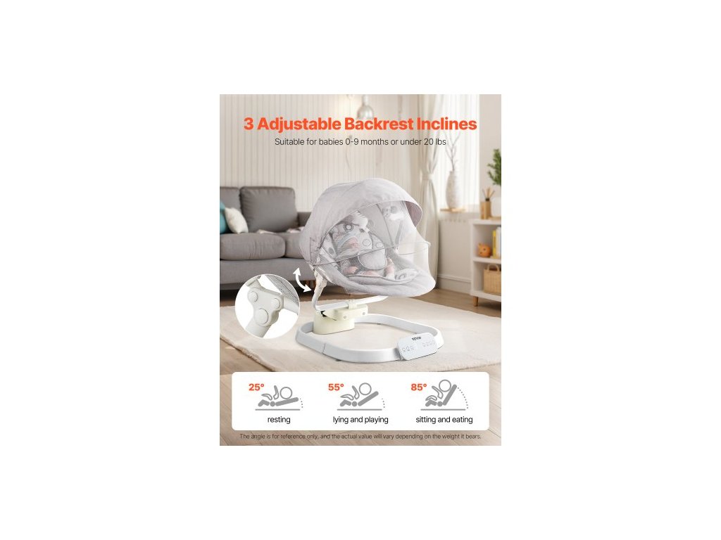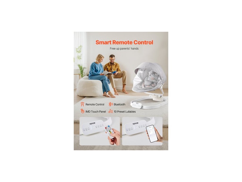 Dětská houpačka , houpací houpačka pro kojence se 3 rychlostmi a 3 polohami sedadla, dotykový panel IMD, dálkové ovládání, Bluetooth a 10 přednastavených ukolébavek, přenosná houpačka pro kojence od 0 do 9 měsíců pro chlapce a dívky do 9 kg.Váš chytrý uklidňující pomocník pro miminka