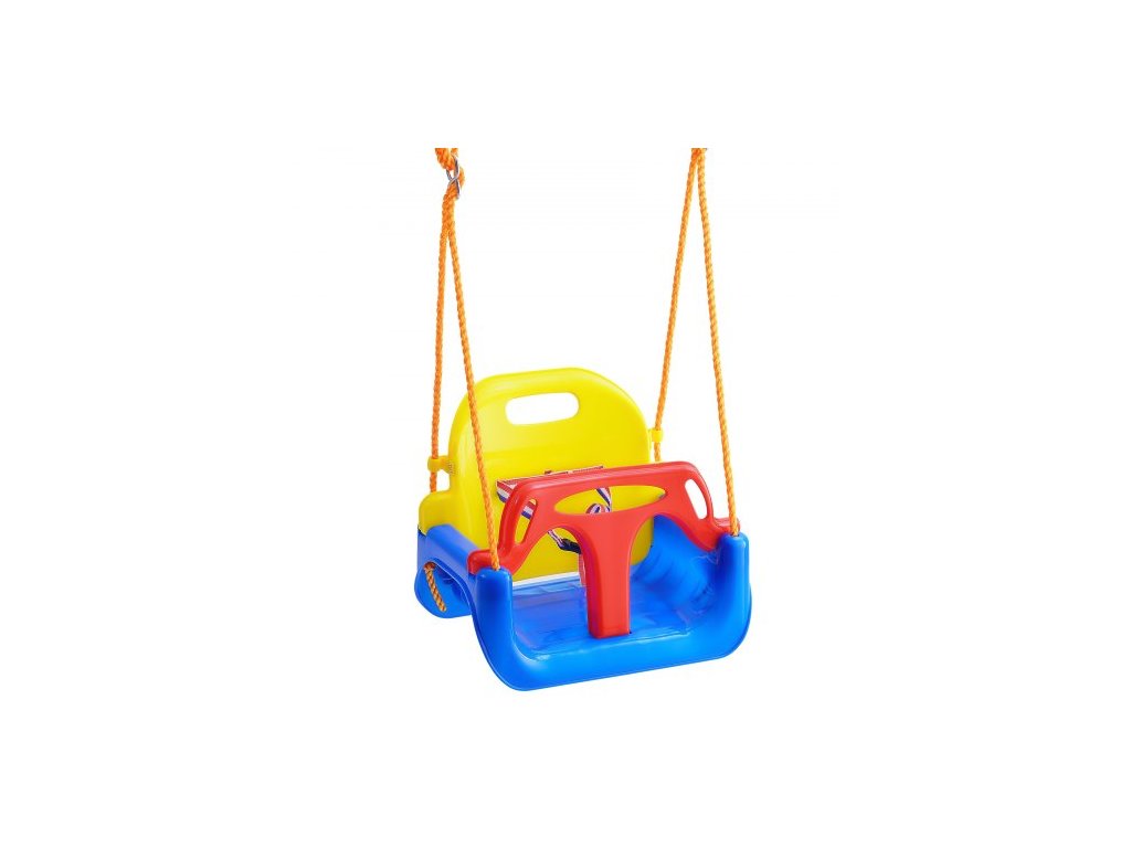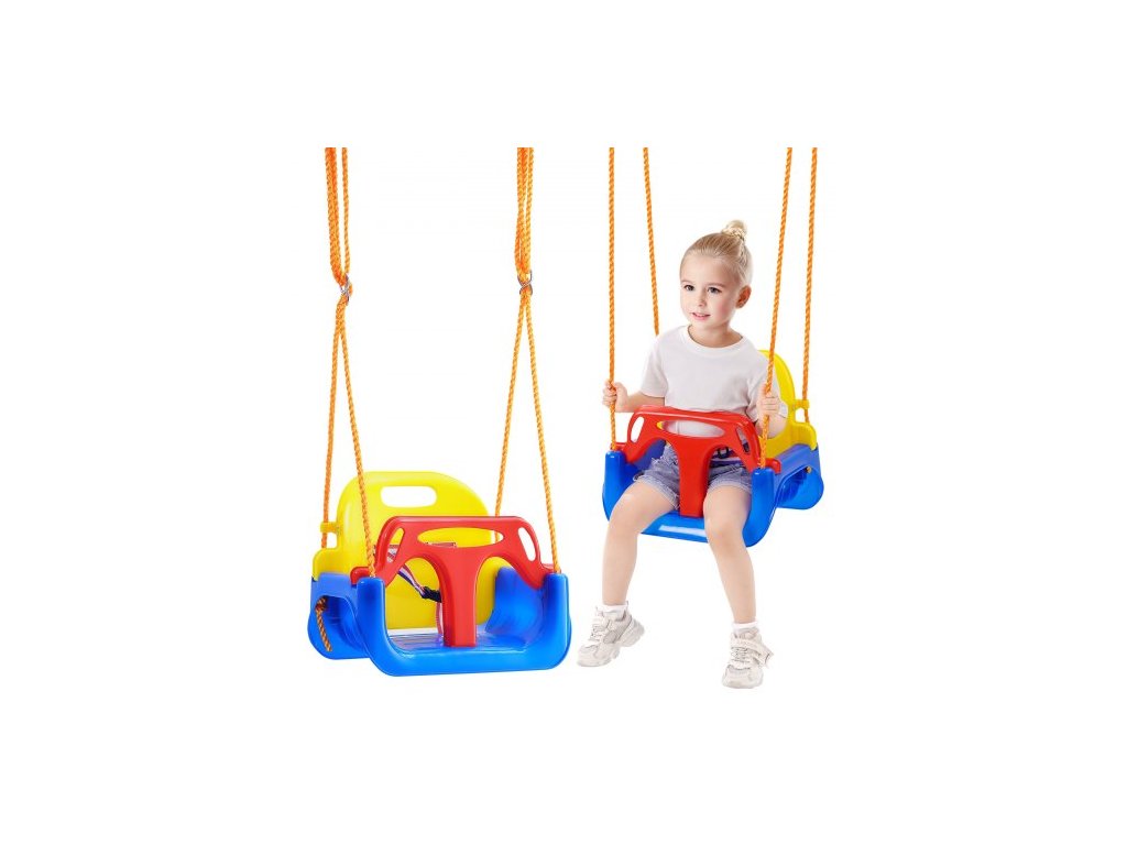 Houpací sedátko 3 v 1 pro batolata, nosnost 90 kg, s nastavitelnými lany a karabinkami, pohodlné a bezpečné odnímatelné houpací sedátko pro kojence a dospívající, pro venkovní i vnitřní použitíOdolné vysoké opěradlo