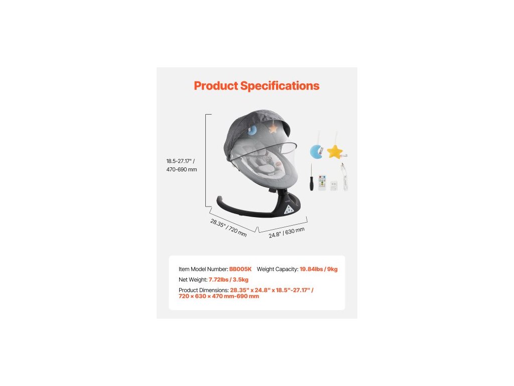 Nosnost: 20 lbs / 9 kg, Číslo modelu položky: BB005K, Rozměry výrobku: 28,35" x 24,8" x 18,5"-27,17" / 720 x 630 x 470 mm-690 mm, Čistá hmotnost: 7,72 lbs / 3,5 kg