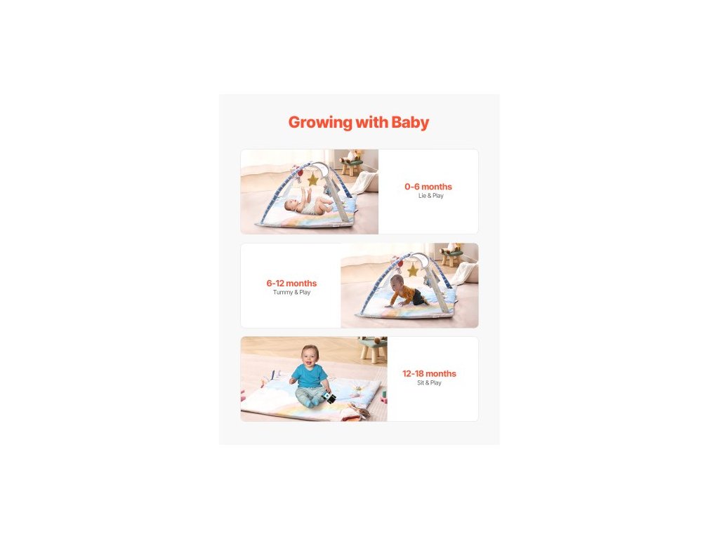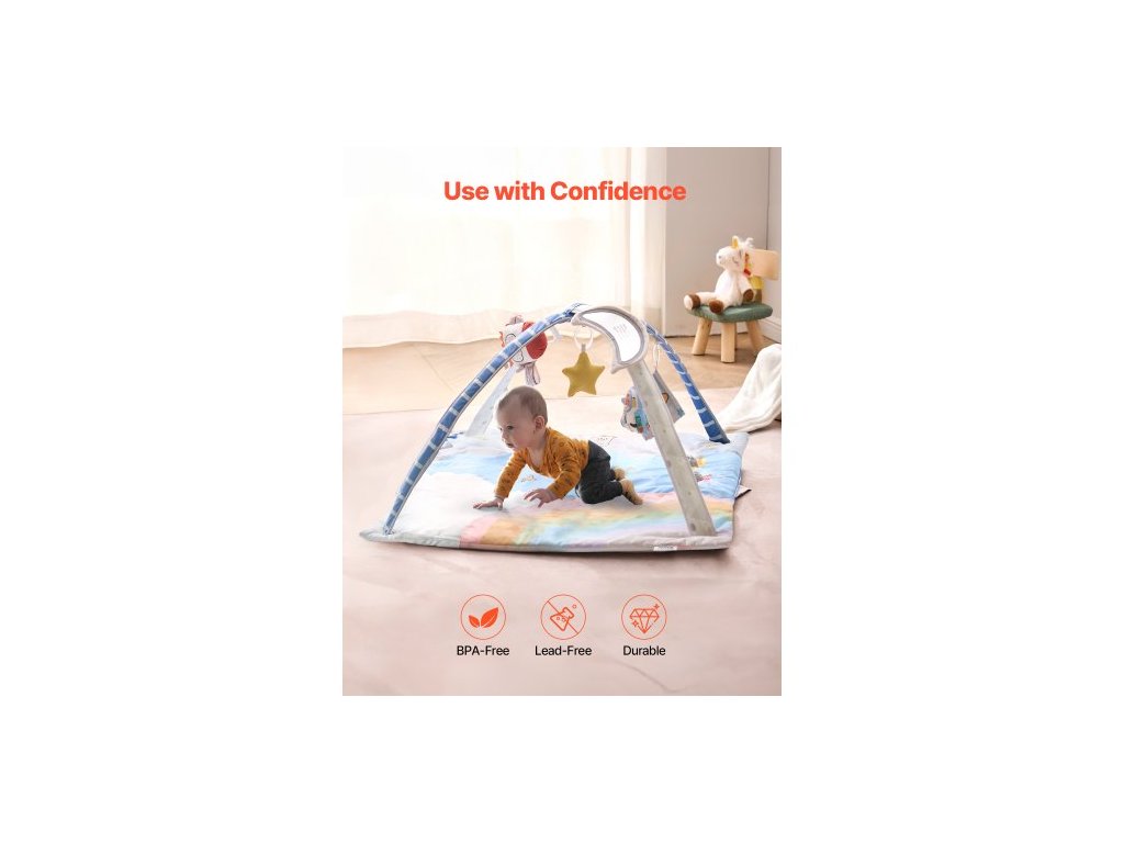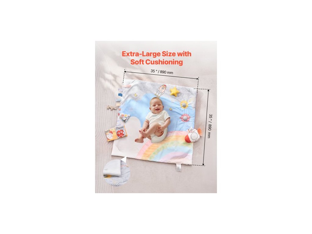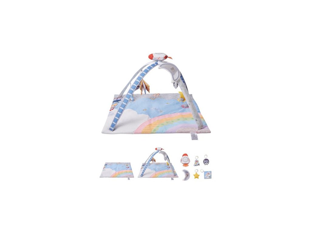Dětská hrací podložka na cvičení, podložka na bříško se 6 senzorickými hračkami, podložka na dětské aktivity se světelnou hudební raketou pro novorozence ve věku 0-18 měsíců, nezbytný dárek pro miminka pro rozvoj senzorických a motorických dovedností6 interaktivních hraček