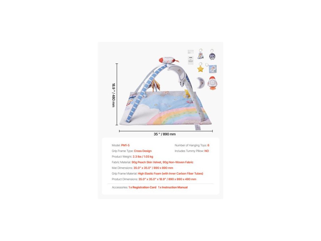 Počet závěsných hraček: 6,Číslo modelu položky: PM1-5,Hmotnost výrobku: 1,03 kg,Rozměry podložky: 890 x 890 mm,Rozměry výrobku: 890 x 890 x 480 mm,Materiál podložky: 90g netkaná textilie, 90g broskvový samet
