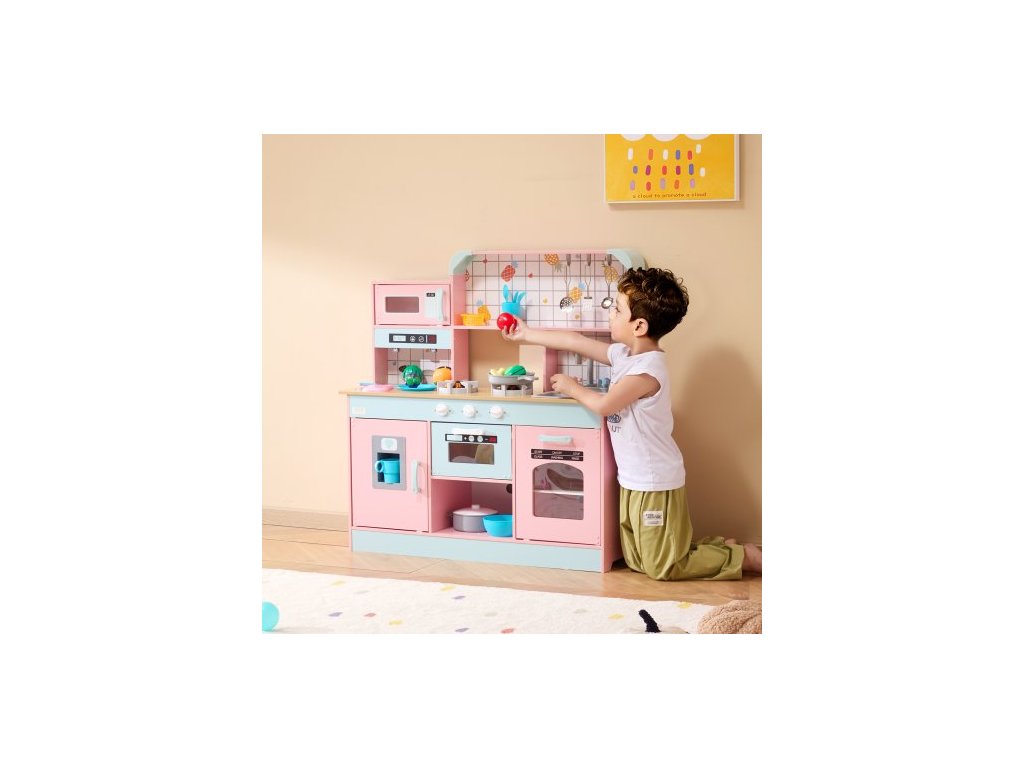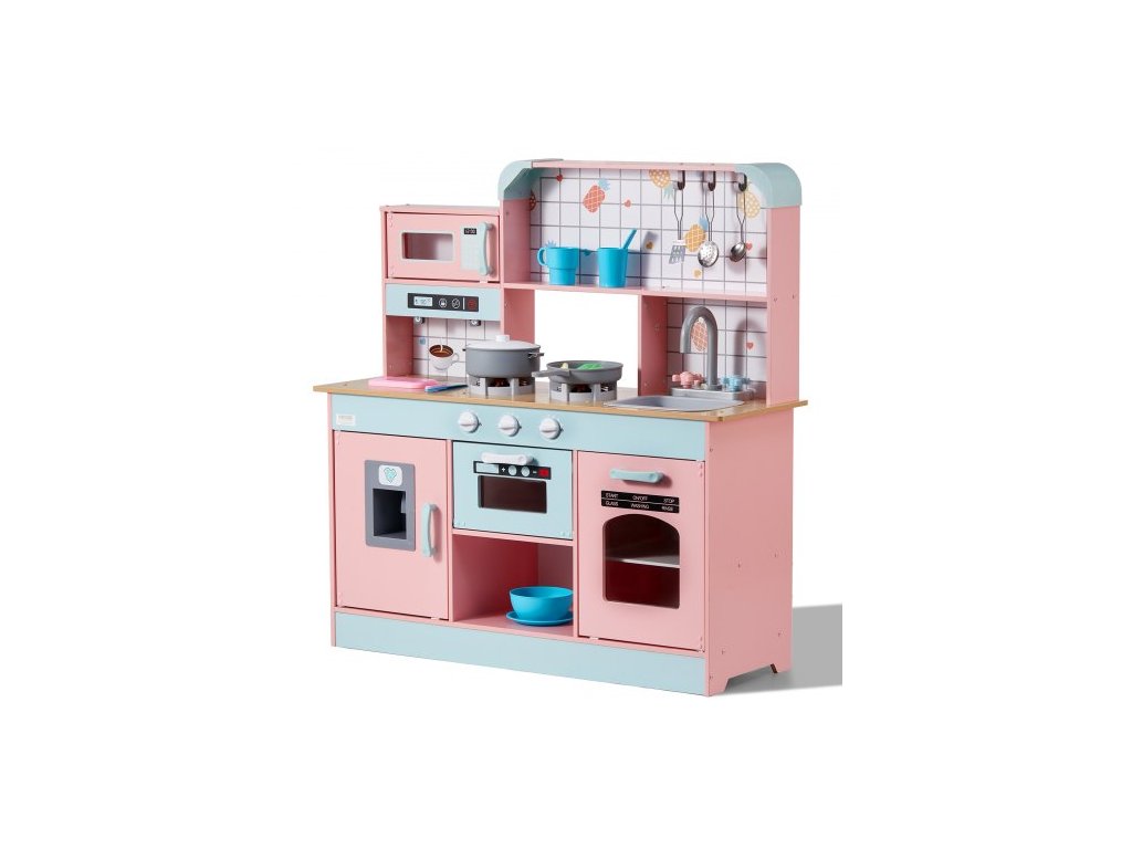 Barva: Růžová, Číslo modelu položky: TLG81021, Hmotnost výrobku: 14,4 kg, Styl: Integrovaný design, Realistické kuchyňské nádobí a jídlo: 24 ks, Materiál: Dřevo (melaminová deska), Specifikace baterií: 6 x 1,5V knoflíkové baterie, Rozměry výrobku: 88,6 x 31,7 x 90,4 cm