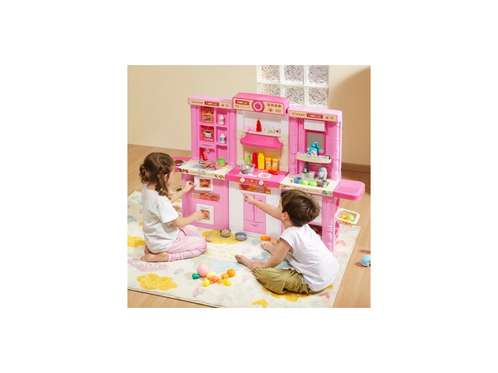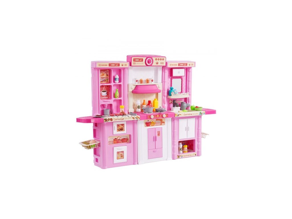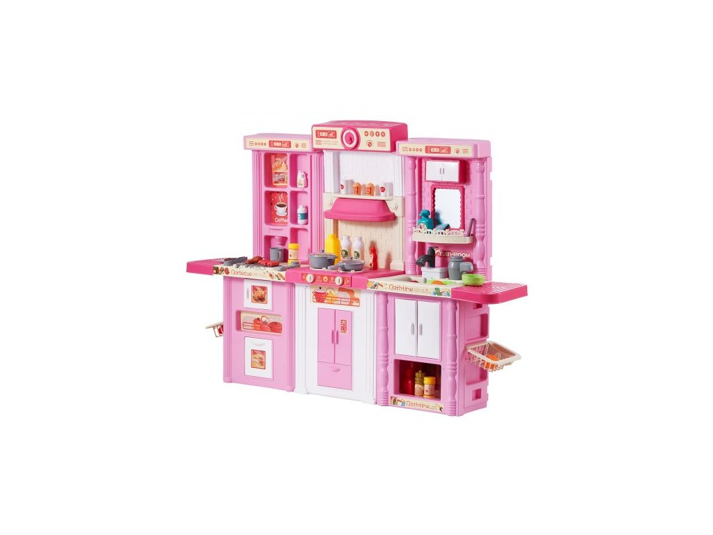 Barva: růžová, Číslo modelu: 1234-7F, Hmotnost výrobku: 7 kg, Styl: Modulární design 3v1 kuchyňky, Realistické kuchyňské nádobí a jídlo: 74 dílů, Materiál: PP, Specifikace baterií: 6 x AA baterie (nejsou součástí balení), Rozměry výrobku: 128 x 29 x 90 cm