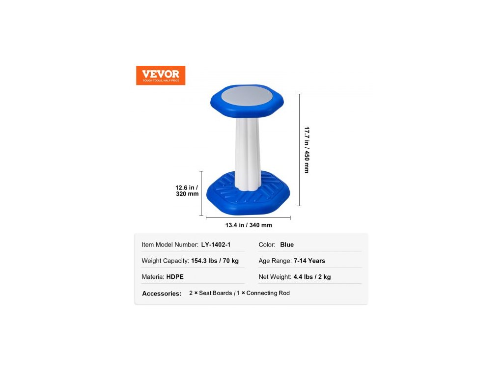 Nosnost: 70 kg, Věkové rozmezí: 7-14 let, Barva: Modrá, Model produktu: LY-1402-1, Materiál: HDPE, Rozměry produktu: 340 × 320 × 450 mm, Čistá hmotnost: 2 kg